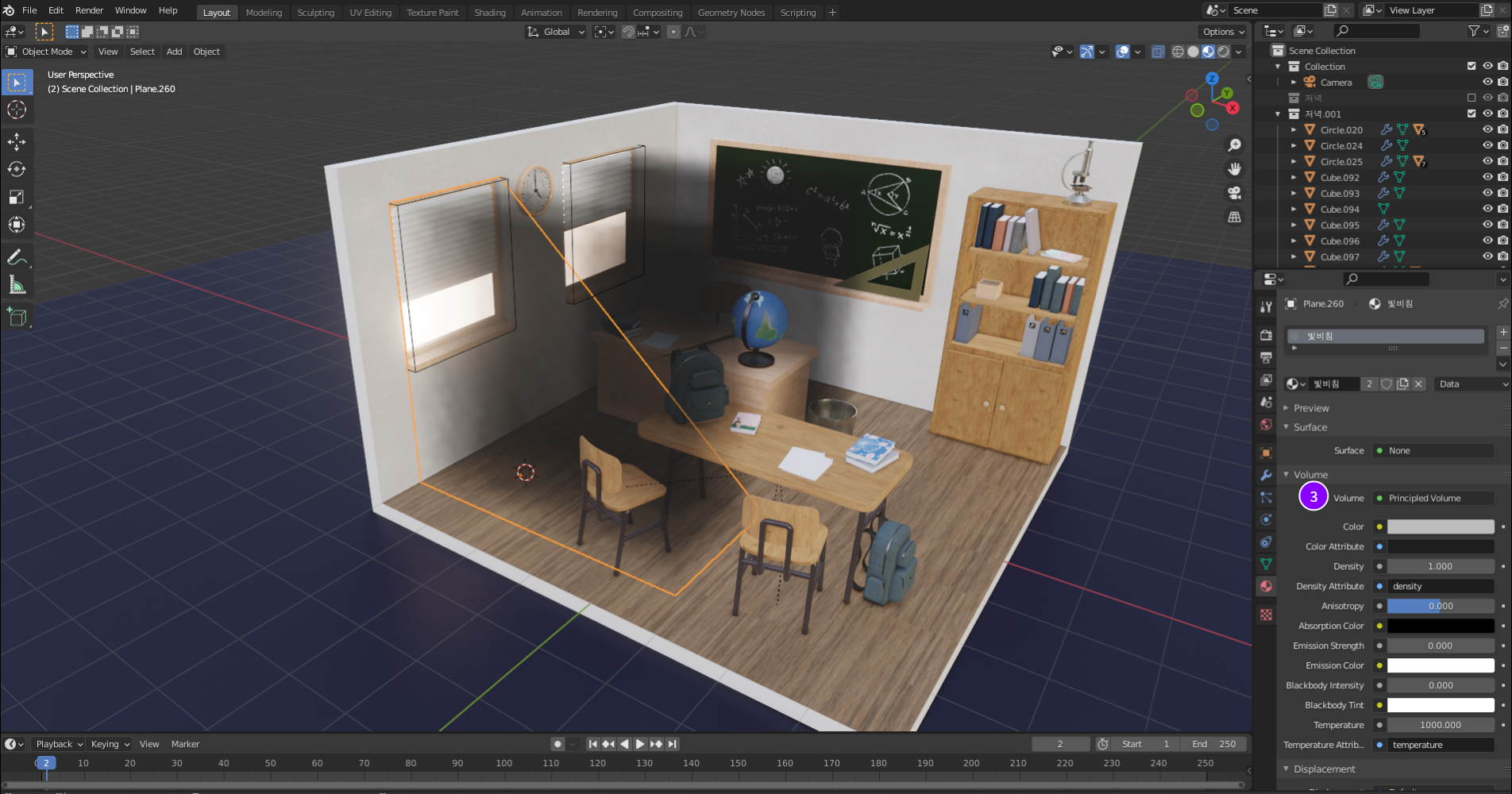 [블렌더 학습] 교실 만들기 #4. 텍스쳐 및 라이팅 (완료!) 본문