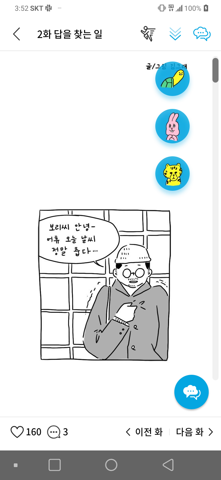 - 첫번째를 그림체가 마음에 안들어서 안봤지만 두번째는 그림체가 만들어서 웹툰을 1편 보았다.