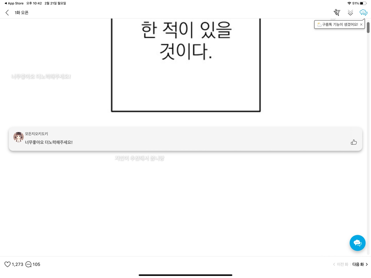 - 사실 단순히 배너 광고로 슬라이드 해놓았다면 안봤을 것 같은데 내가 직접 긁고 뽑은 웹툰이라서 뭔가 특별한 느낌이 들어서 보게 되었다.