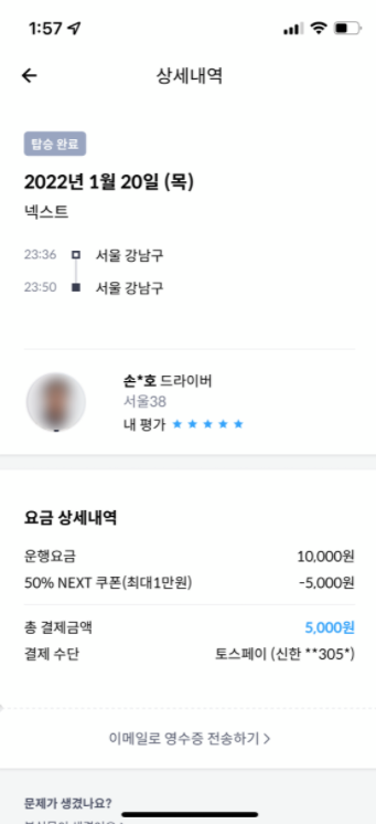 👍 '이메일로 영수증 전송하기' 기능이 좋았다. 출력해야할 일이 있을텐데 모바일에서 캡쳐하고 출력하기에는 번거로우니까. |