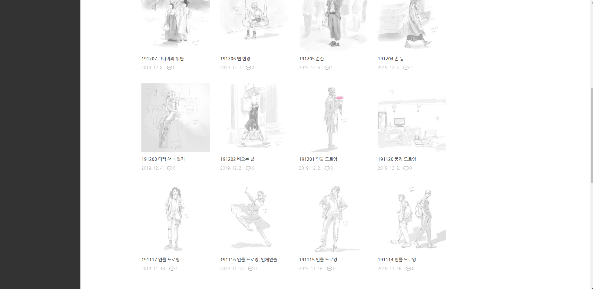 블로그 (https://blog.naver.com/somgs34 |지금은 관리하지 않는 네이버 블로그)에 그림을 그리고 하루하루 기록하기 시작했다. 지금은 멈췄지만 210일을 꾸준히 그렸다. 야근을 해도 그냥 빠르게 그리고 잤고, 술을 먹고 취한 날에도 삐뚤삐둘 그리고 잤다. 지금 생각하니까 나를 칭찬해주고 싶다. (잘 했어요! 👍) 처음 그릴 때는 내가 너무 못 그린 것 같아서 글로 올리기에 창피했다. 하지만 나는 잘 그린 그림을 올리려고 한 것이 아니라 습관을 만들기 위해서 시작한 것임으로 그냥 '꾸준히' 올리는 것을 목표로 삼았다.
