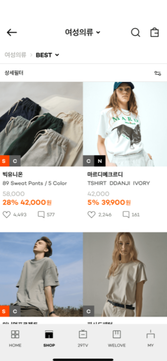 1. 페이지 별로 텍스트 크기나 색상 등 정보 강조 체계가 다른 것 같다. 2. 할인 전 가격은 연하게 표시했지만 취소선으로 그으면 더 직관적일 것 같음 |