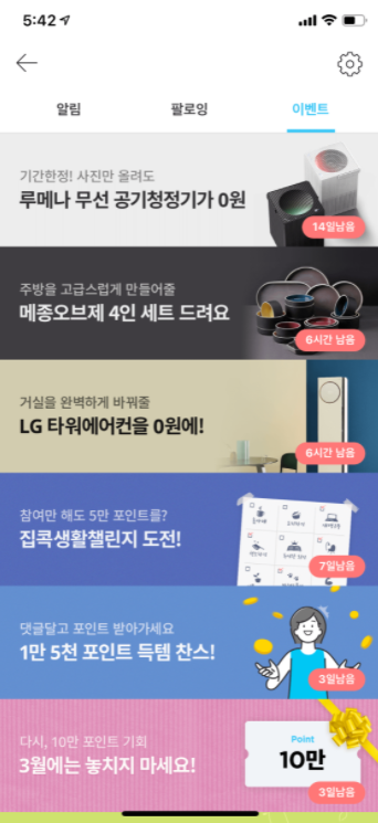 1. 이벤트 배너 디자인 가이드가 잘 되어있어서 통일성 있게 느껴진다. 복잡하지 않음. 남은 시간 표시도 좋은 것 같음. - 상시 or 기간 있음(1일 이내 or 1일 이상 남음) |