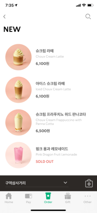 1. sold out 되었더라도 음료 가격은 궁긍할 수가 있는데 솔드아웃 표시를 가격 위치에 해놓아서 가격을 파악할 수 없는 것이 아쉽. - 상품명 뒷 쪽에 라벨이나 썸네일에 표시를 할 수도 있었을 것 같다. |