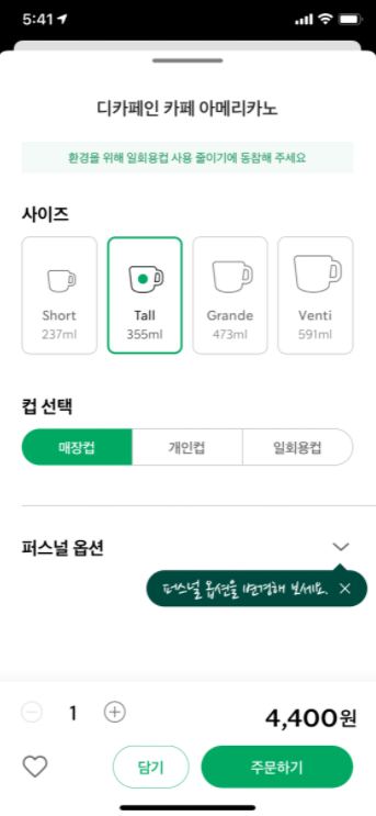 1. 아이콘으로 컵 크기를 직관적으로 비교할 수 있게 제공 | |