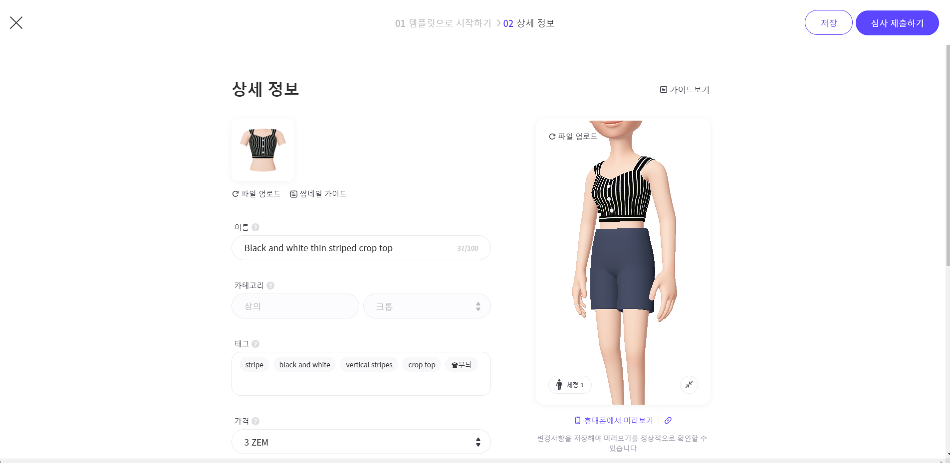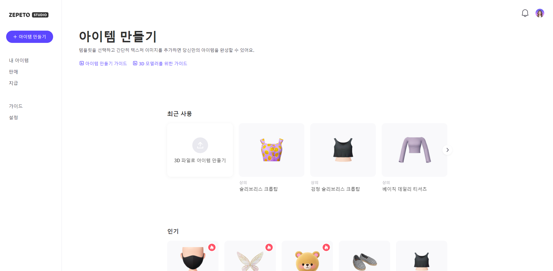 ZEPETO 제페토 스튜디오 의상 아이템 판매해보기 본문