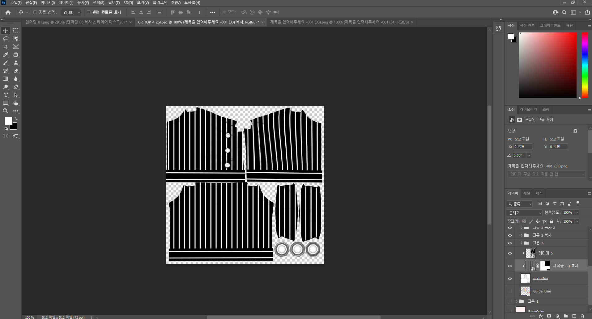 일단 유튜브에서 블랙 아이템이 잘 나간다는 소리를 들어서 색상은 블랙으로 미리 정해버렸고, 빠르게 경험하는 것이 목표여서 복잡한 텍스쳐는 포기하고 간단하게 줄무늬 모양으로 만들어보기로 했다.