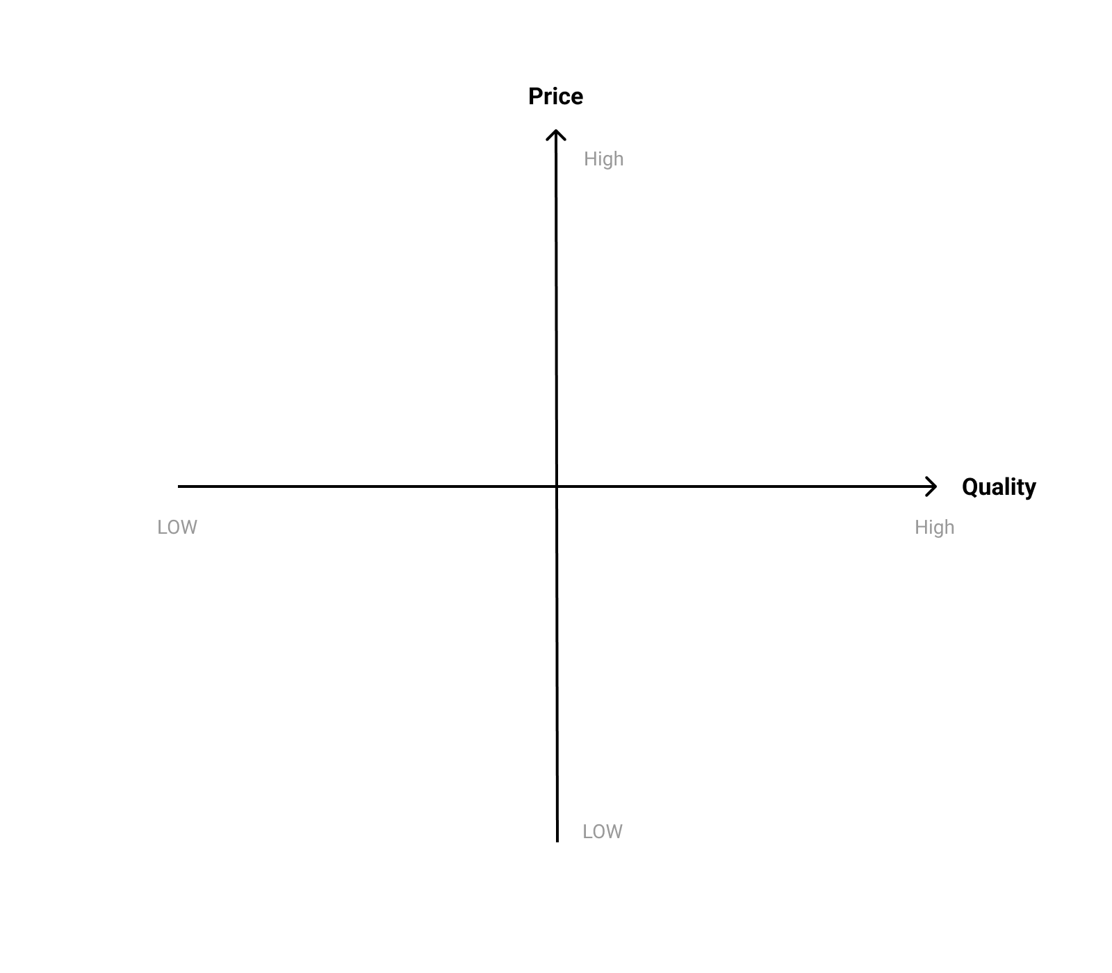일반적인 상품 포지셔닝 맵은 다음과 같이 두 가지 요소를 x축, y축으로 잡아 low, high으로 나누어 서비스를 배치 시킨다. 그리고 우리 서비스는 어떻게 인지시키고 싶을지 자리를 잡아본다.