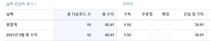 수익을 디테일하게 정리해보자면 총 16개의 이미지를 판매를 했고, 15개는 구독형, 1개는 단일형(?)으로 판매가 되었다.