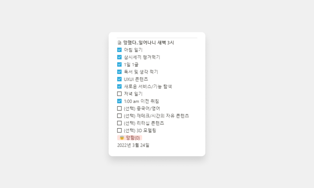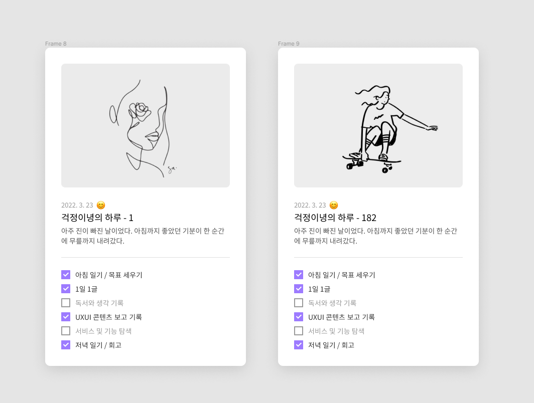 - 타이틀 : 000의 하루 1 > 1은 기록에 따라 올라감 → 매일을 기록하는 과정 자체가 의미있는 것임.