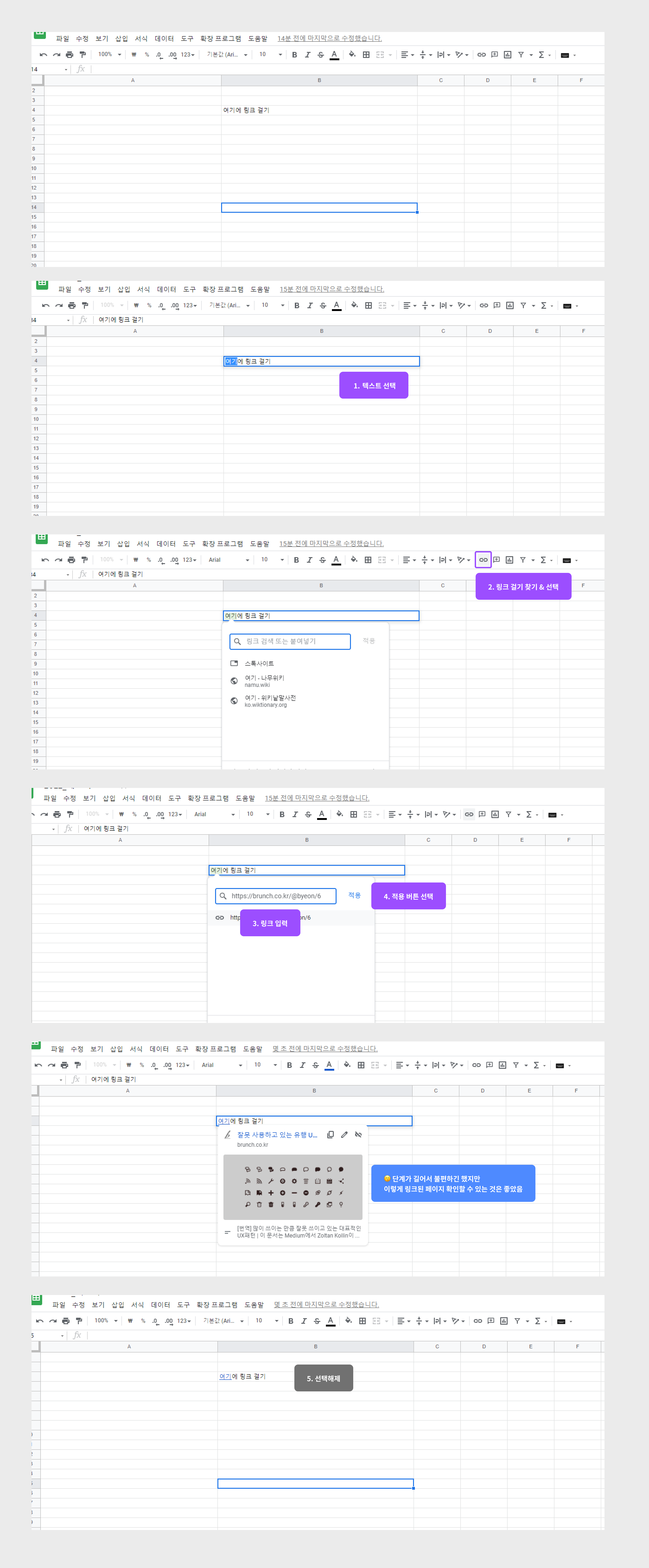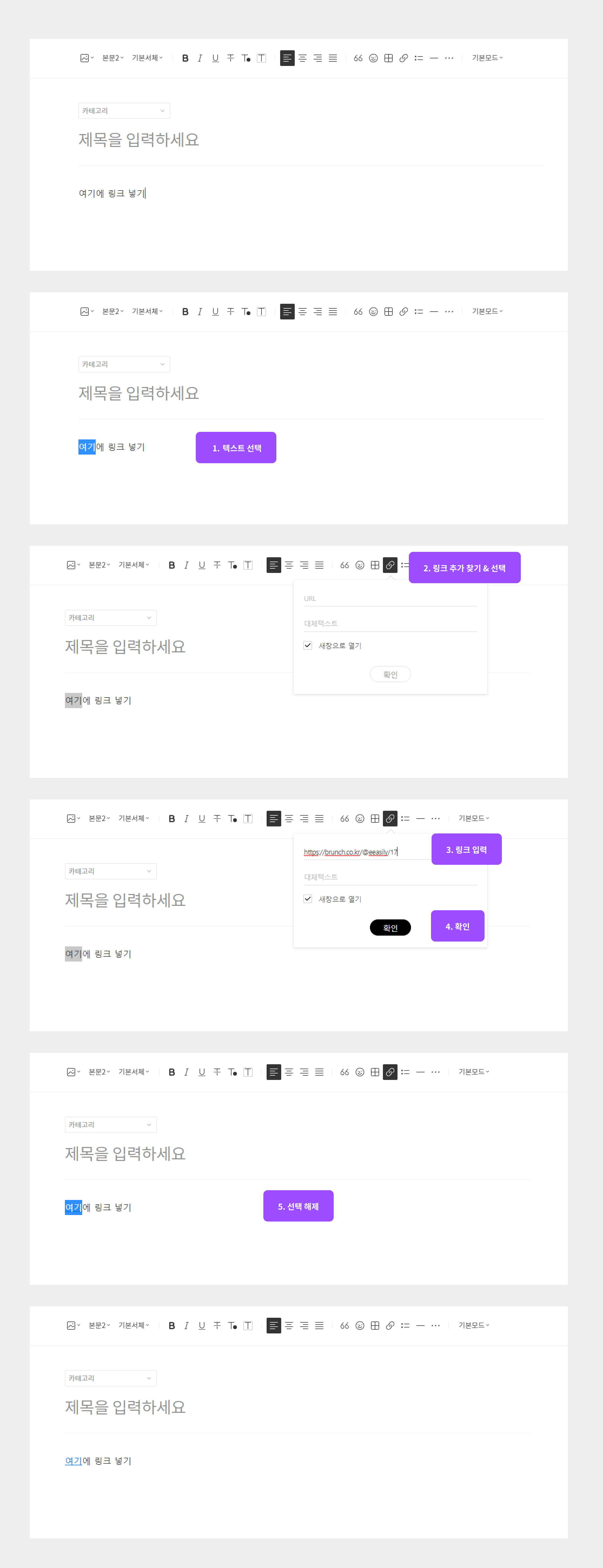 - 일반적인 서비스에서는 링크를 걸 텍스트를 드래그하고 어딘가에 놓여있는 링크 걸기 버튼을 클릭해서 URL를 입력한 후에 완료 버튼을 클릭해야한다.