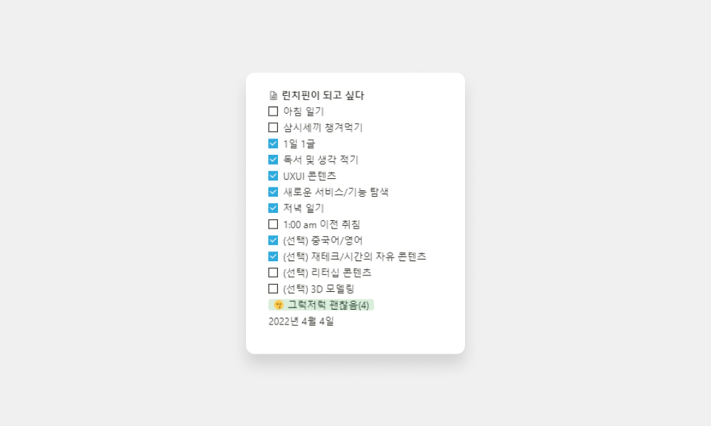 - 오늘도 습관을 유지하며 홀로서기를 다짐했다.