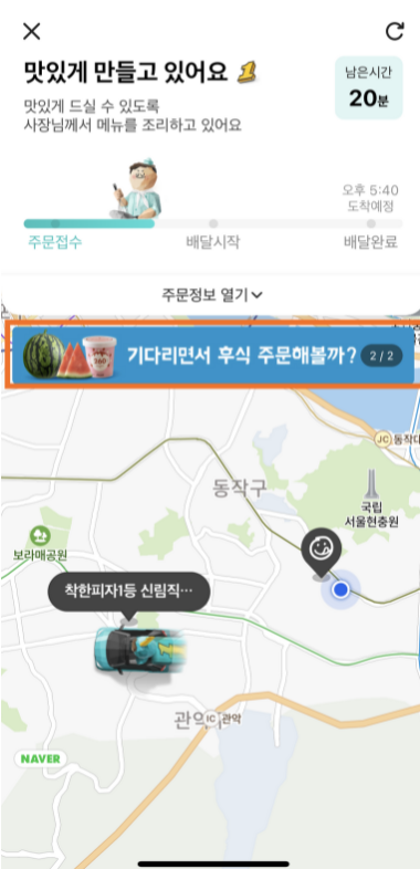 - 주문을 완료하면 기다리면서 후식 주문을 하라는 배너가 뜬다.