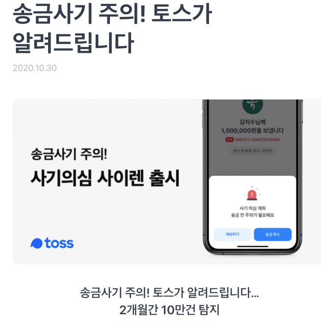 - 사실 필수 기능은 아니지만 정말 고객을 위해서 사기 계좌를 알려줌