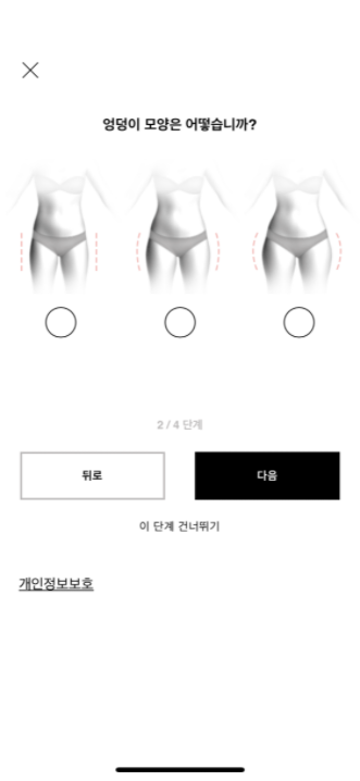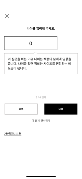 - 나이 정보를 입력받을 때 다소 쓸모없는 데이터를 요구하고 있는 것 같아서 부정적인 생각이 들 수도 있는데 왜 나이를 입력하면 좋은지 설명을 해주고 있음. 나이가 사이즈에 미치는 영향.