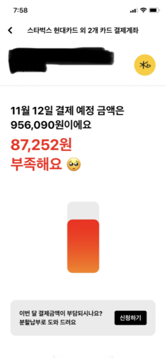 - 결제 금액 대비 현재 금액 상태를 확실히 알려줌