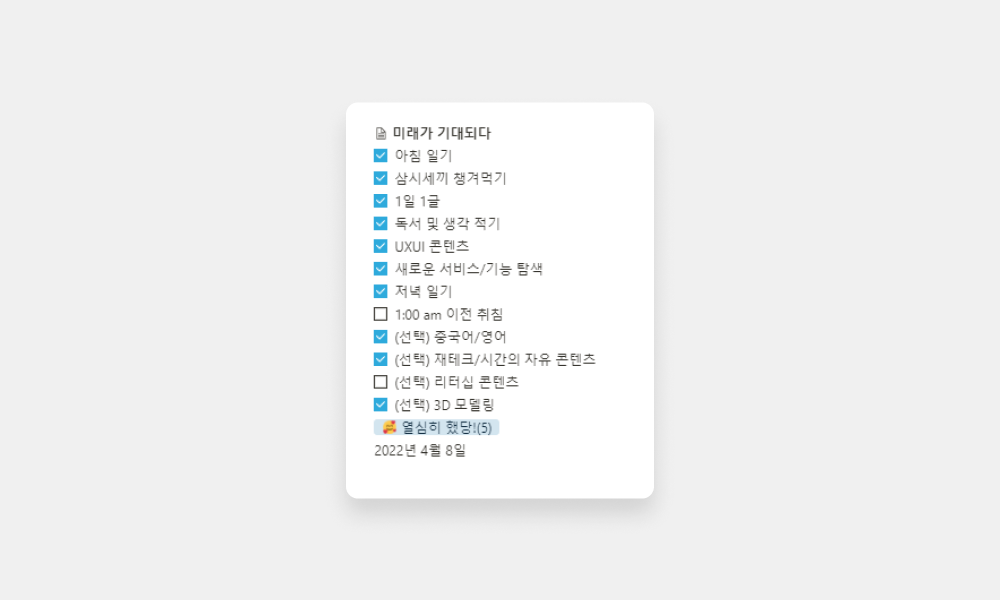 - 오늘 같은 하루를 꾸준하게 반복했을 때 미래가 기대된다.