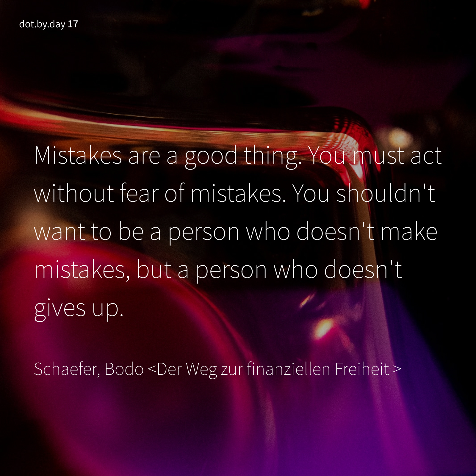 천구를 발명한 토머스 에디슨이 9,000번 정도 실패를 거듭하고 있었다. "나는 실수는 하고 있는 게 아니라 전구를 발명할 수 없는 새로운 방법을 계속 배우고 있는 거라네. 매번 실수는 나를 점점 더 발명에 가까워지게 하고 있다네."
