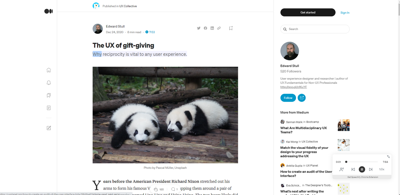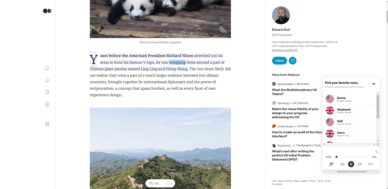 - 상단에 읽는 데 총 걸리는 시간과 플레이 버튼이 노출된다