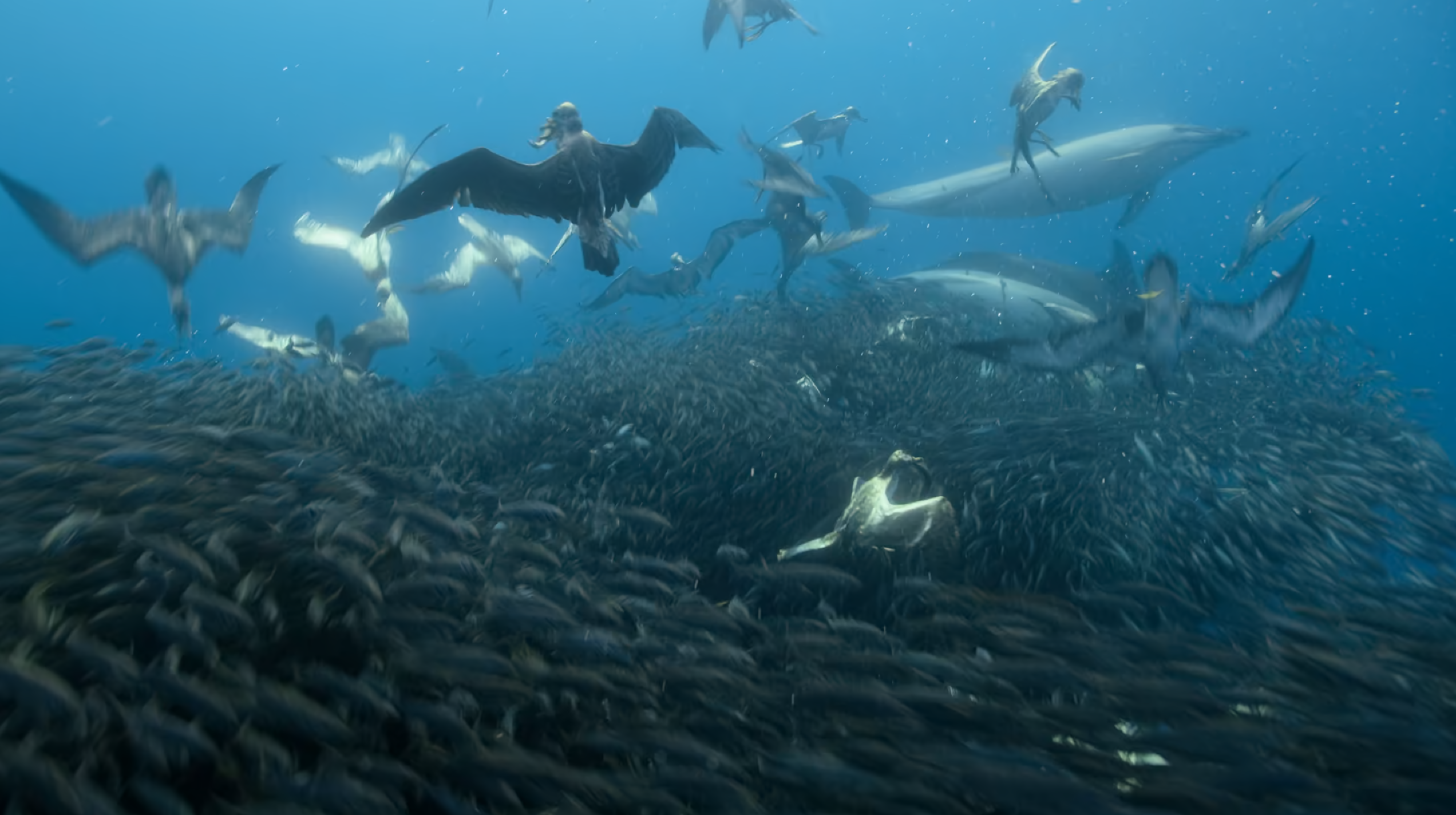 - 크릴새우를 먹는 고등어, 고등어떼를 수면 위로 모는 돌고래, 고등어를 먹기 위해 잠수하는 새. 위에서는 새와 아래에서는 돌고래에게 먹히는 고등어. 서로 먹고 먹히는 생태계가 신기하고 아름다우면서도 동물로 태어나보는 상상을 하면서 나는 과연 잘 살아남을 수 있을까 걱정됐다.