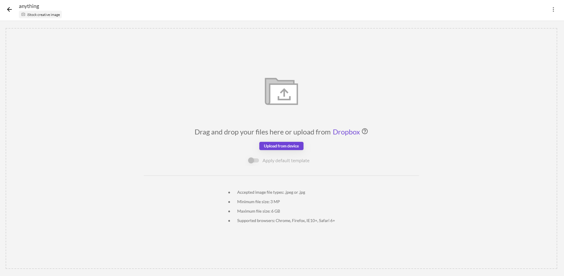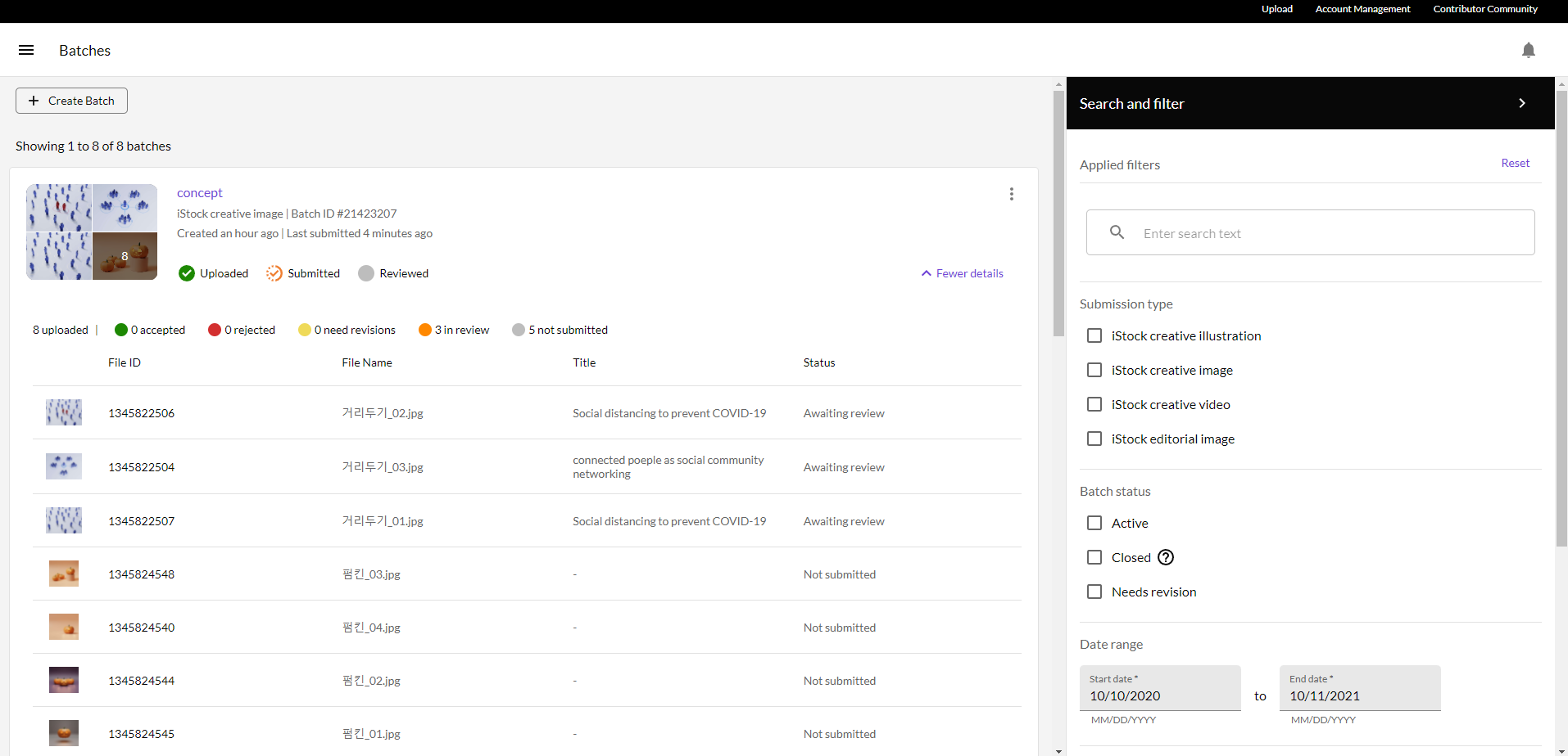 batch를 생성하면 아래와 같은 화면이 뜬다. 드래그앤드롭으로 이미지를 올려주면 자동으로 업로드 된다.