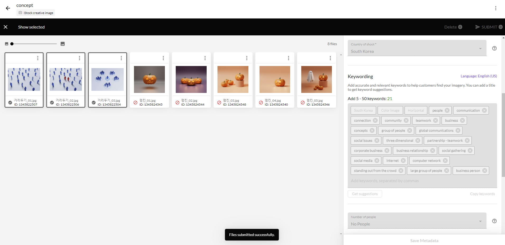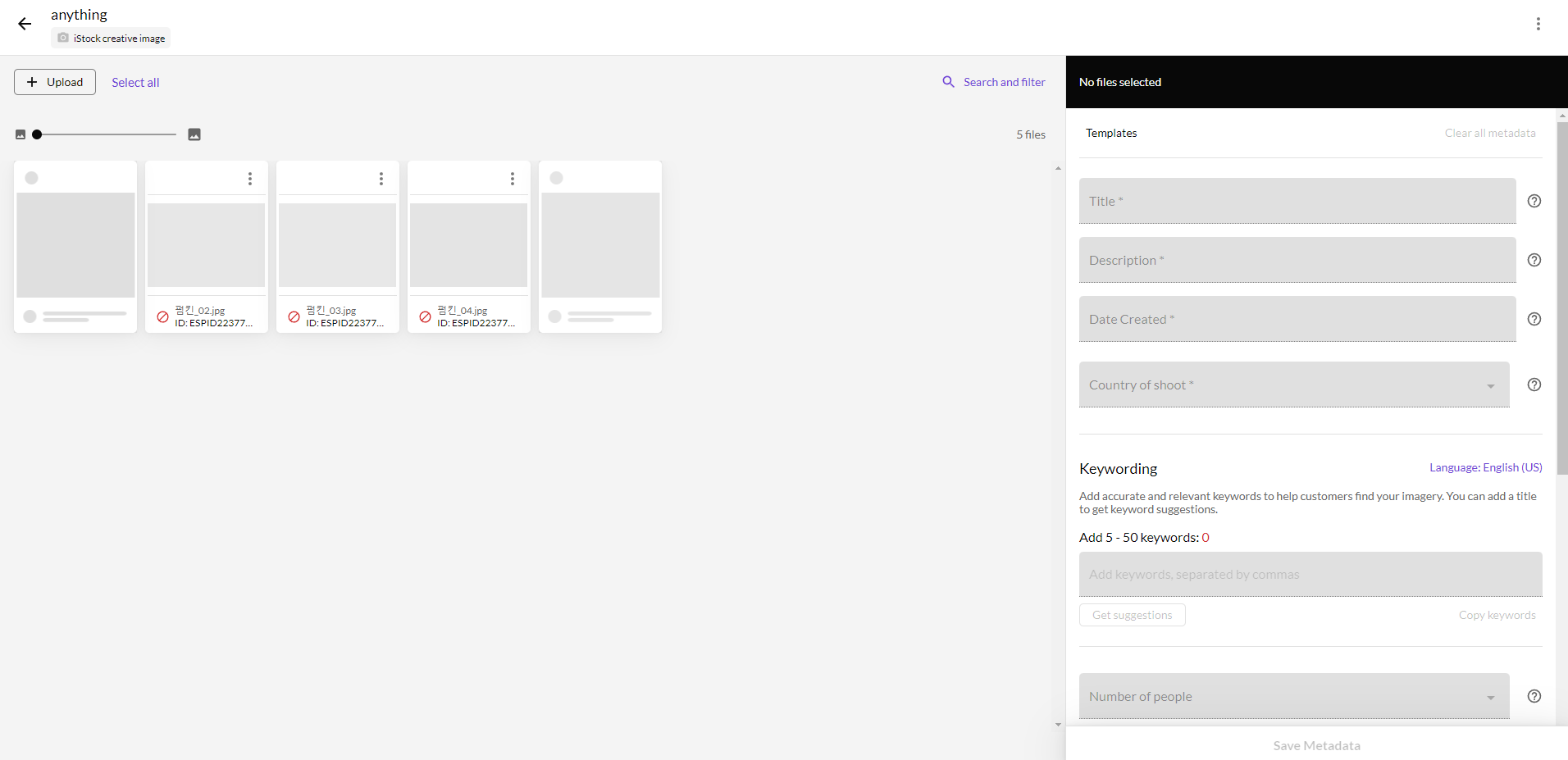 정보를 다 입력했으면 save metadata를 선택하여 정보를 저장한다. 제대로 정보가 저장되었으면 이미지 앞의 아이콘이 초록색 화살표 모양으로 변경된다. (업로드 가능한 상태라는 것)