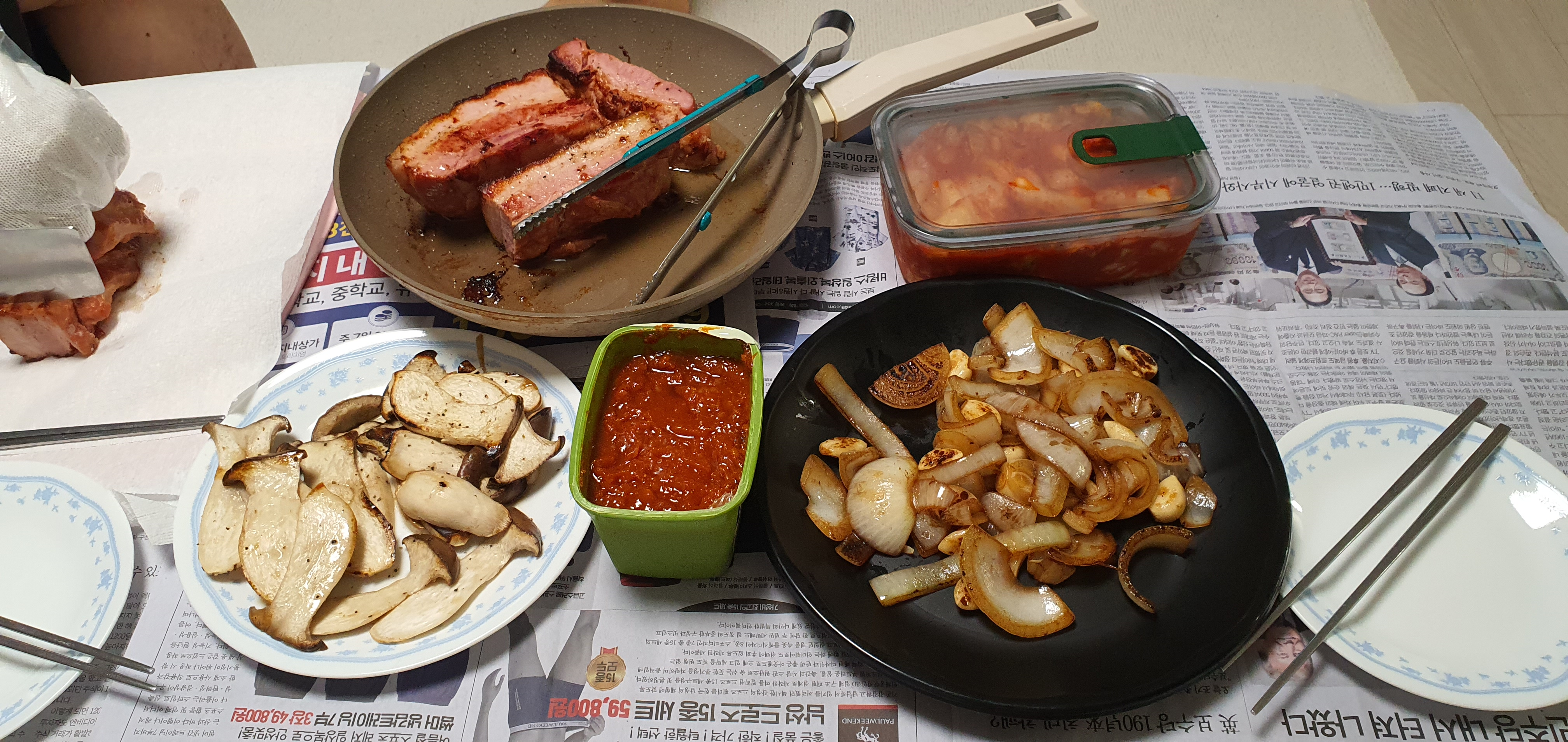 | 저녁 - (들깨수제비 조금) - (아이스크림) - 훈제 삼겹살? |