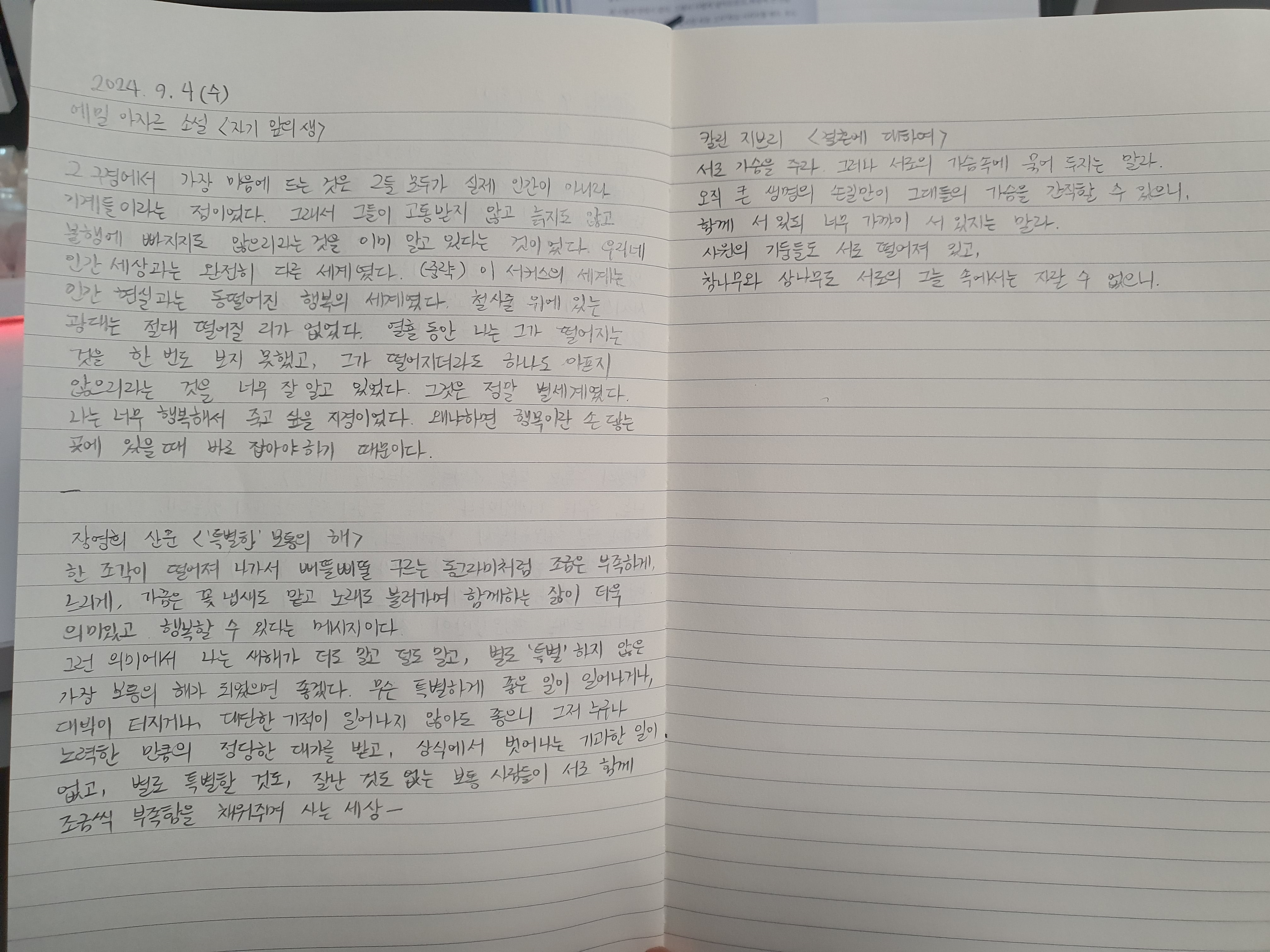 - 오늘 나는 어떤 작은 순간이 나에게 특별한 기쁨을 주었나? 그 이유는 무엇인가?