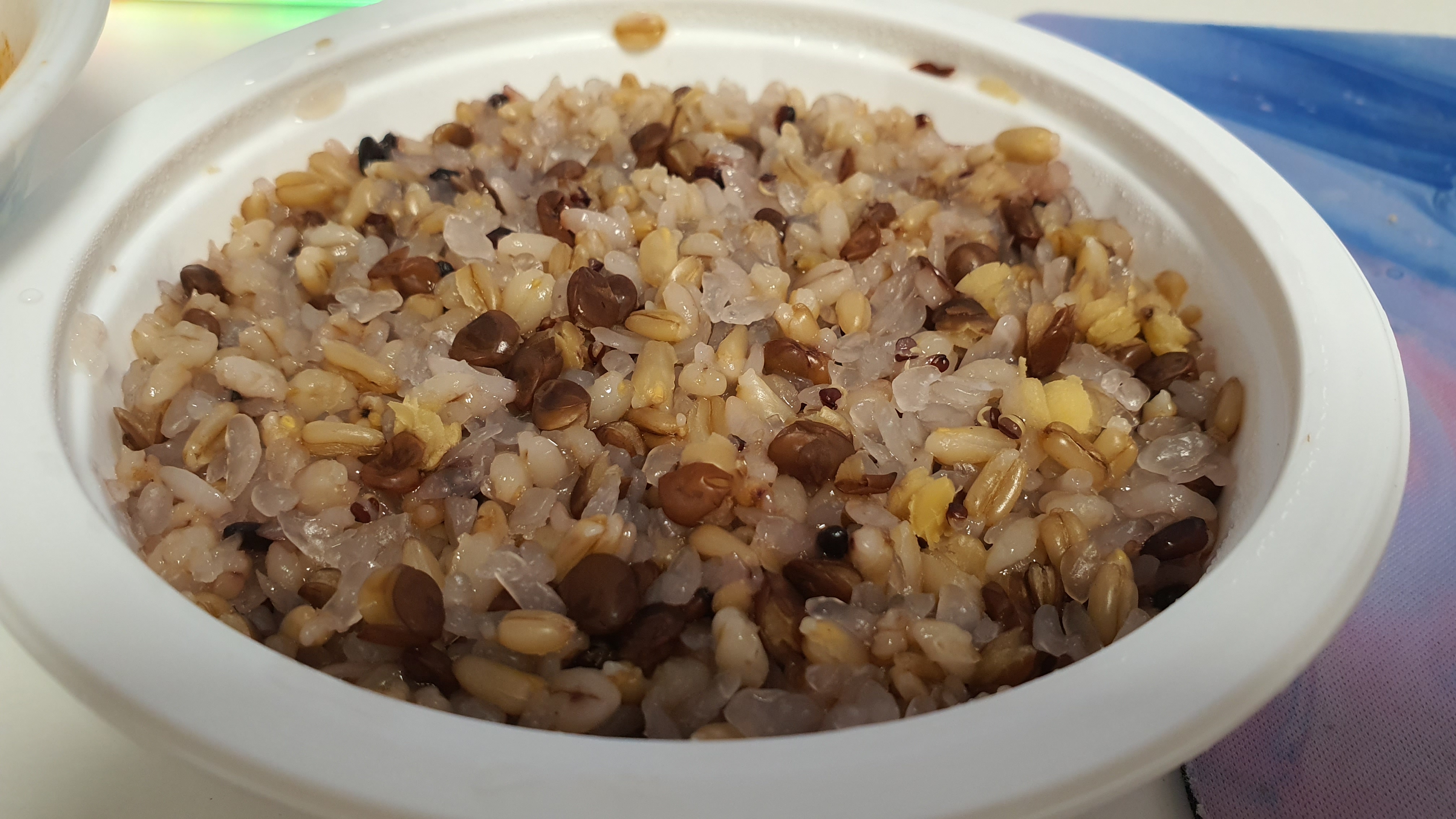 렌틸콩퀴노아곤약밥. 렌틸콩이 저속노화 식단에서 중요하다고 하길래 한번 사봤다. 생각보다 톡톡 튀고 맛있었다. 앞으로 정착! 아마 저 진한 갈색 덩어리가 렌틸콩인 것 같다. 150g에 160칼로리라고 하는데, 검색해보니 그냥 흰쌀밥과 그리 차이는 나지 않는다. 음... 그래도 탄수화물은 안 좋다고 하니.
