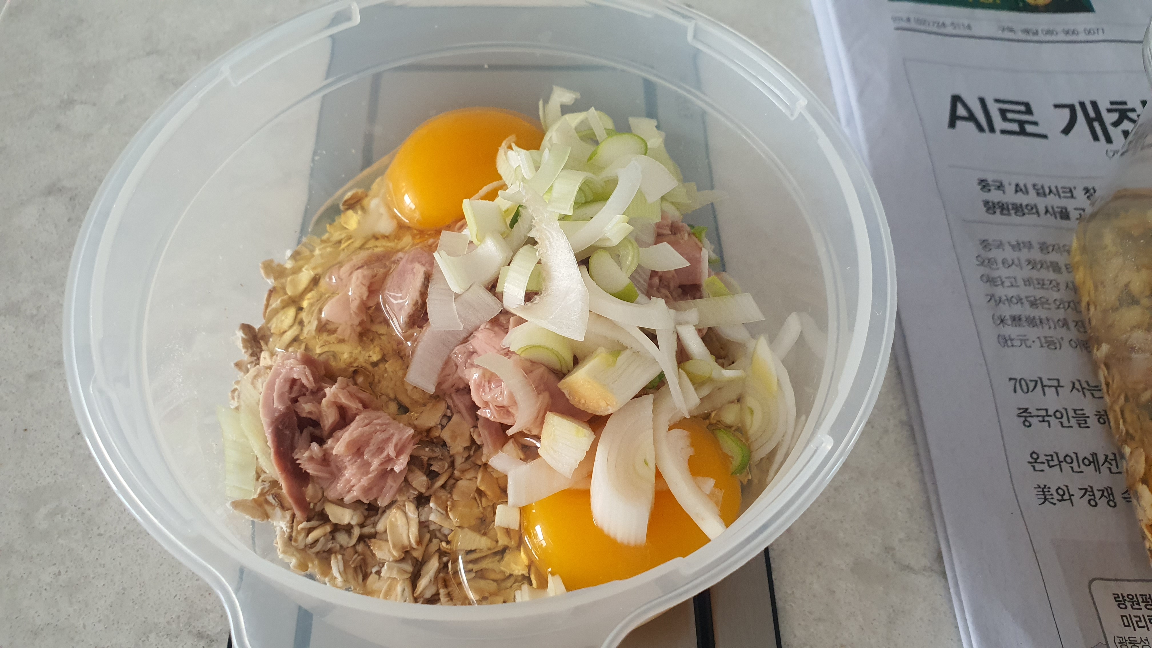 오랜만에 오트밀참치죽. 오트밀 5숟가락, 계란 2개, 파 선택, 참치 반캔, 후추소금. 골판지 씹는 느낌이 난다고 하는데 나름 괜찮다. 아침에 엄마, 아빠에게도 만들어드려서 같은 식사로 하루를 시작했다.