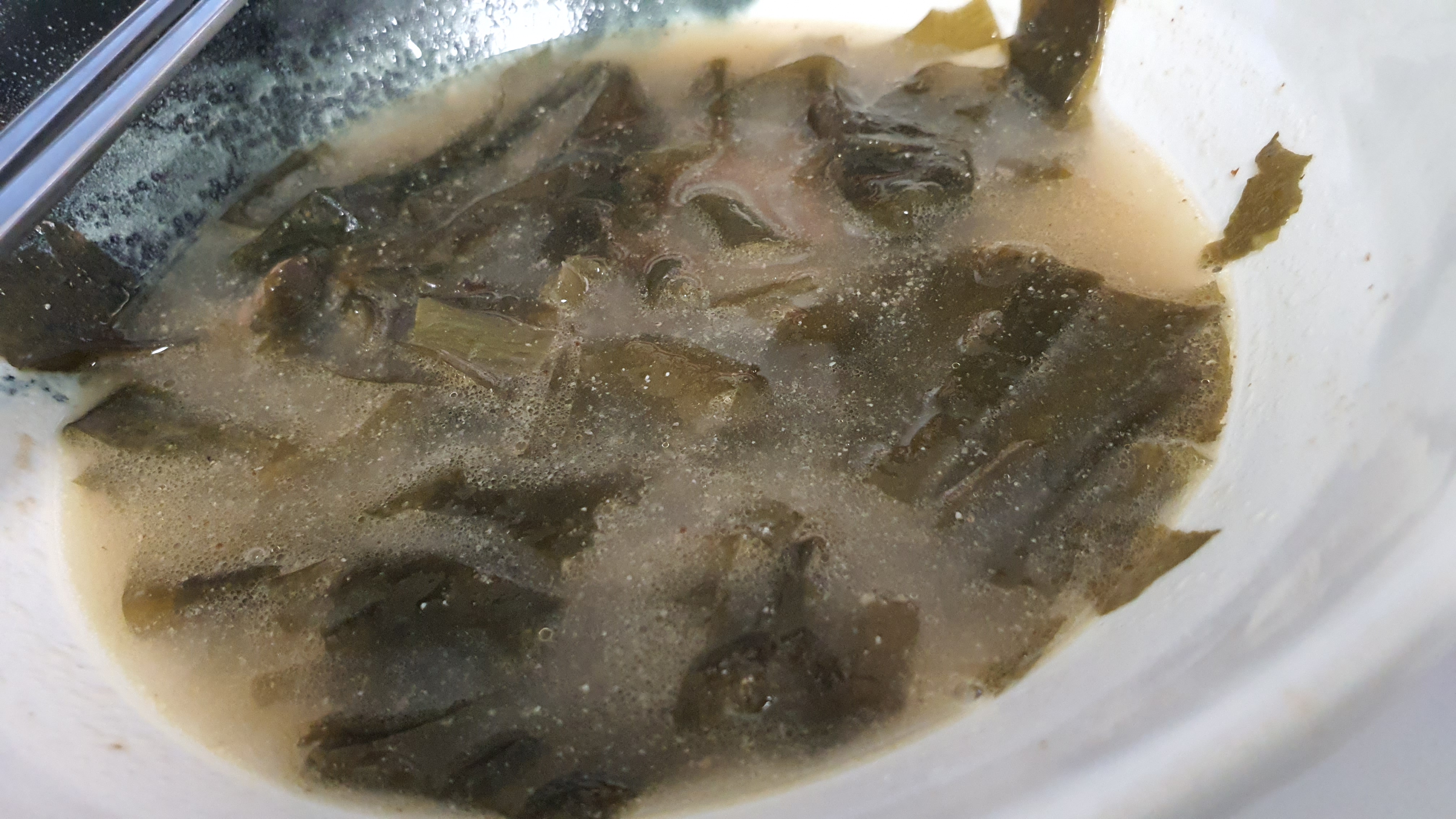 국물 속에 미역이 유려한 선을 그리며 흩어진다. 부드럽게 퍼지는 결은 마치 바닷속 해초처럼 유영하는 듯하고, 깊이 우려진 국물은 그 자체로 온기를 머금고 있다. 기름방울이 반짝이며 표면을 감싸고, 숟가락을 떠올리면 한 올 한 올 부드럽게 풀어진다. 한입 머금으면 부드러움과 감칠맛이 차분히 퍼지며, 마치 바닷바람이 스쳐가는 듯한 기분이 든다.