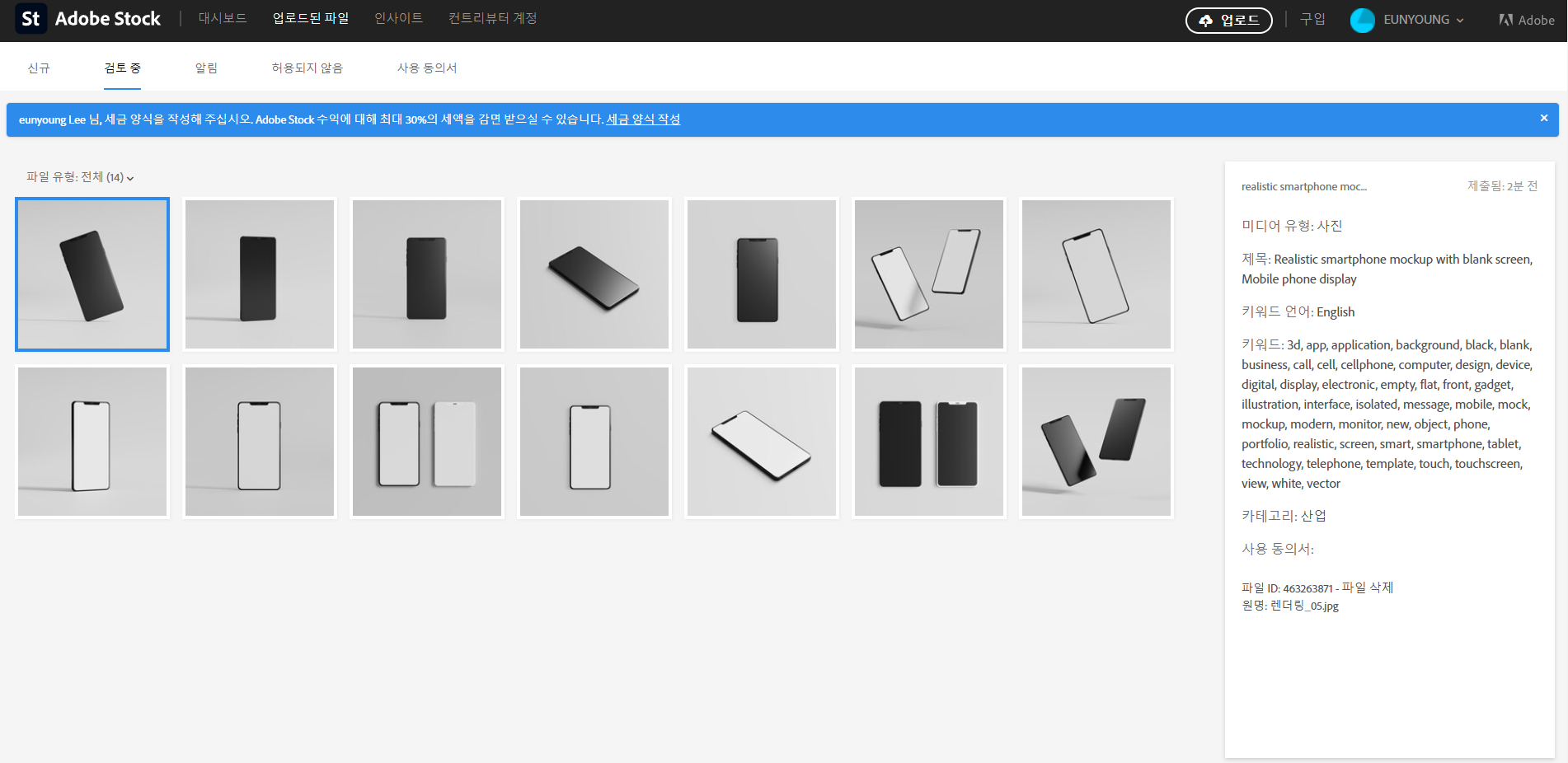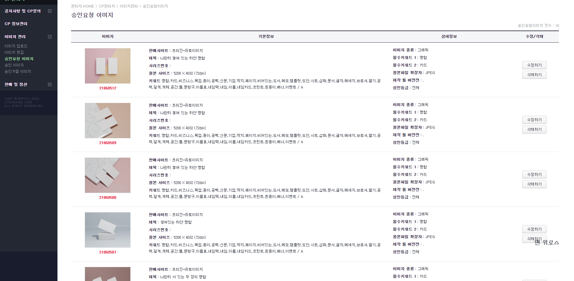 아직 한 번도 업로드를 해본 적이 없어서 어떤 것이 승인이 나고 미승인이 나는지 파악학 위해서 10개만 업로드 요청해봄.