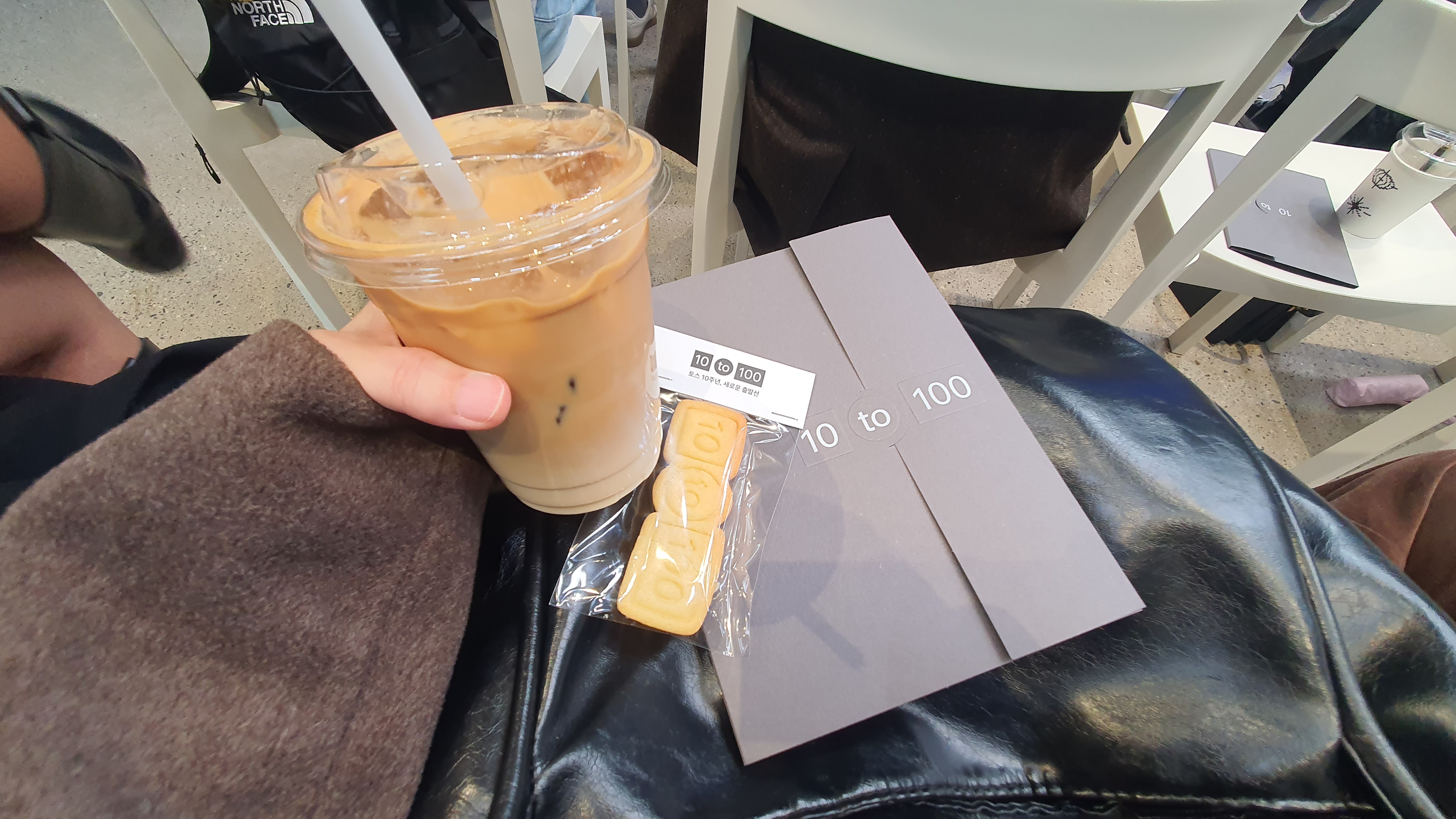 토스 컨퍼런스에서 받은 다양한 콘텐츠물과 아이스라떼, 쿠키. 이것 말고도 키링도 있는데 찍지는 못했다. 키링 퀄리티는 그냥 그랬다. 3D 프린터로 인쇄한 것 같기도 했고. 인기 있는 강사분들, 무료 커피와 쿠키 등 꽤 많은 준비를 한 것 같다. 다양한 시도를 할 수 있는 조직 문화가 멋지게 느껴진다. 쿠키도 10 to 100으로 만들 만큼의 세심함. 홀더 안에는 정체를 알 수 없는 유인물들도 있는데 내일 천천히 살펴봐야겠다.