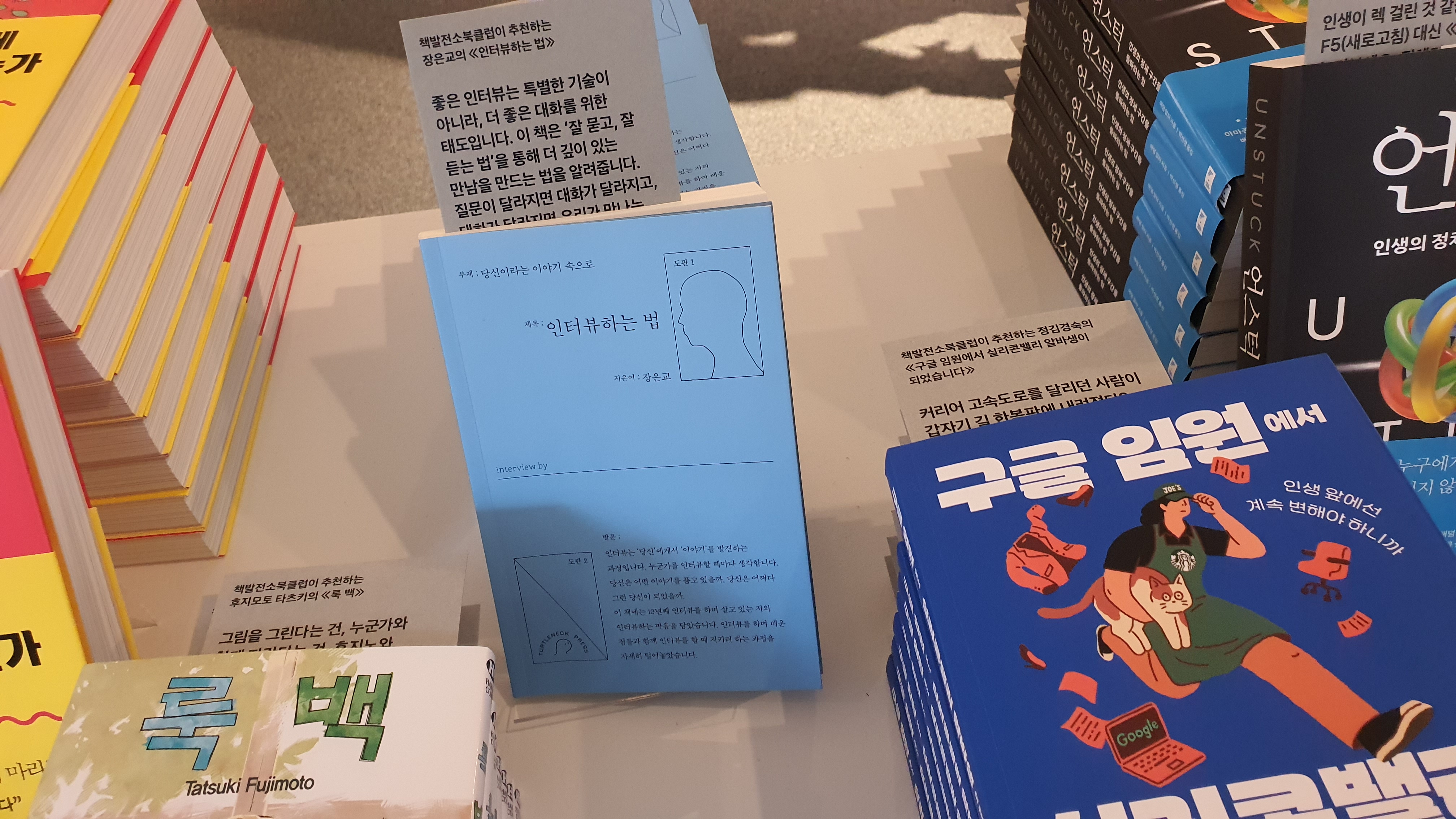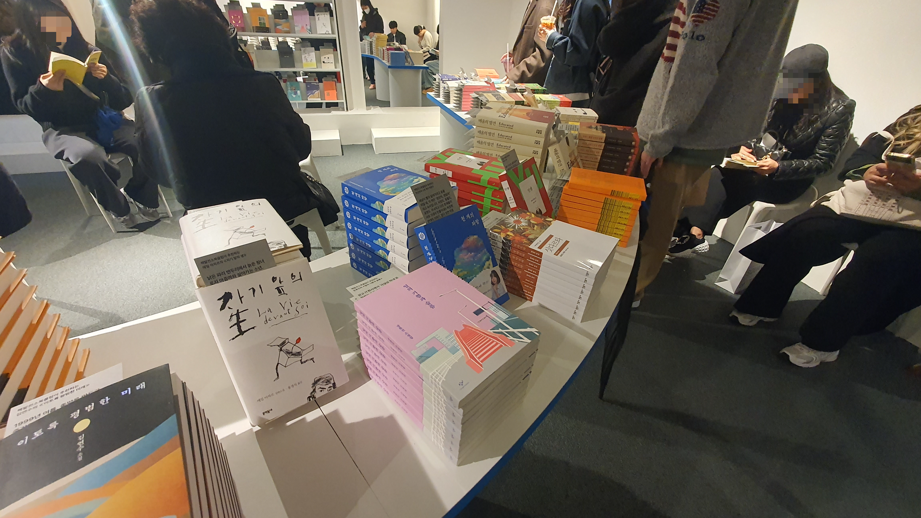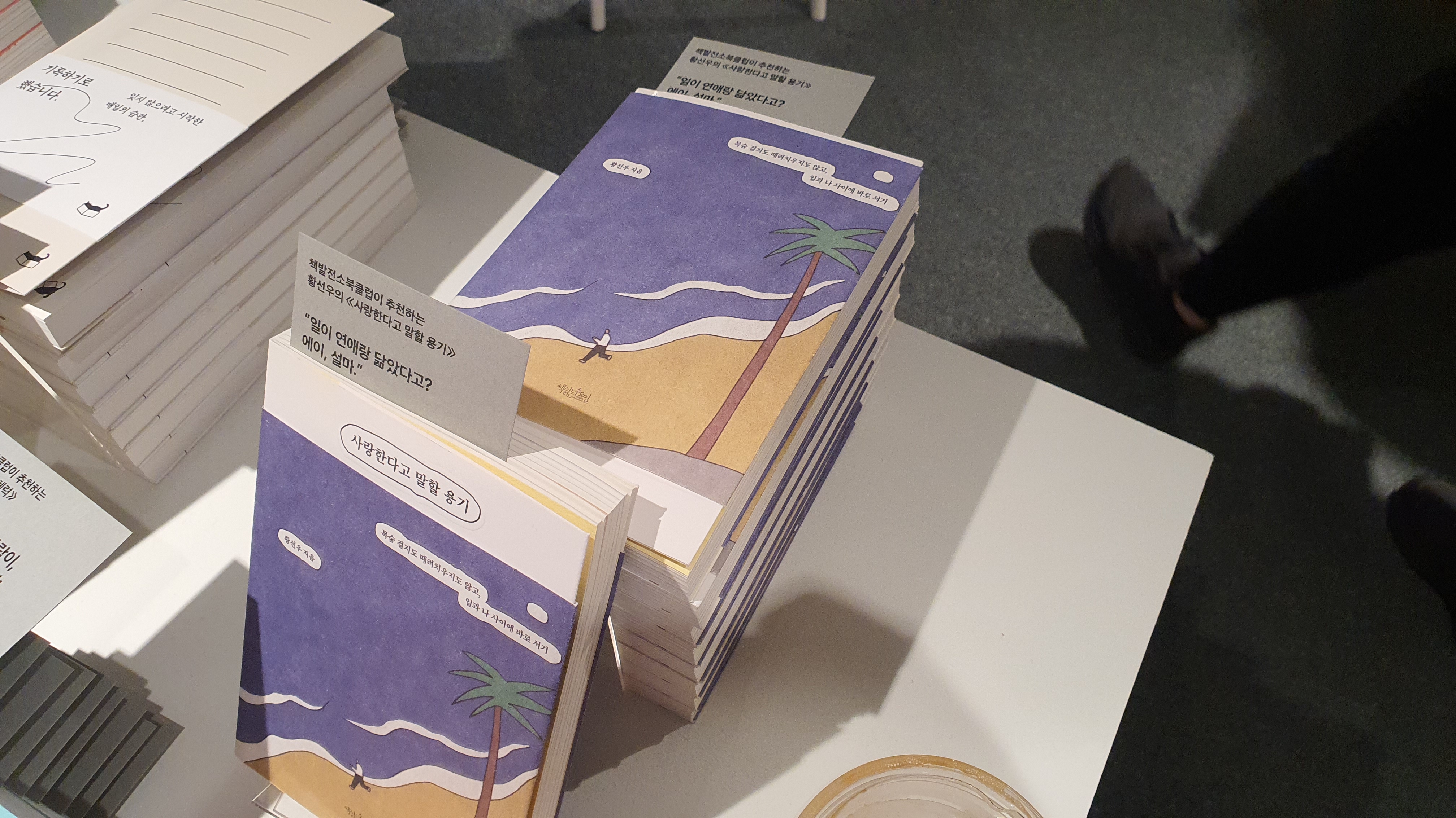 북 큐레이션을 한 전시 공간도 있어서 들렀다 왔다. 100권 정도 있다고 하는데, 각 책마다 간단하게 추천사를 적은 리플렛이 꽂혀 있었다. 흥미로운 책들을 몇권 발견해서 찍어왔다. 다시 읽을 것들이 쌓였다.