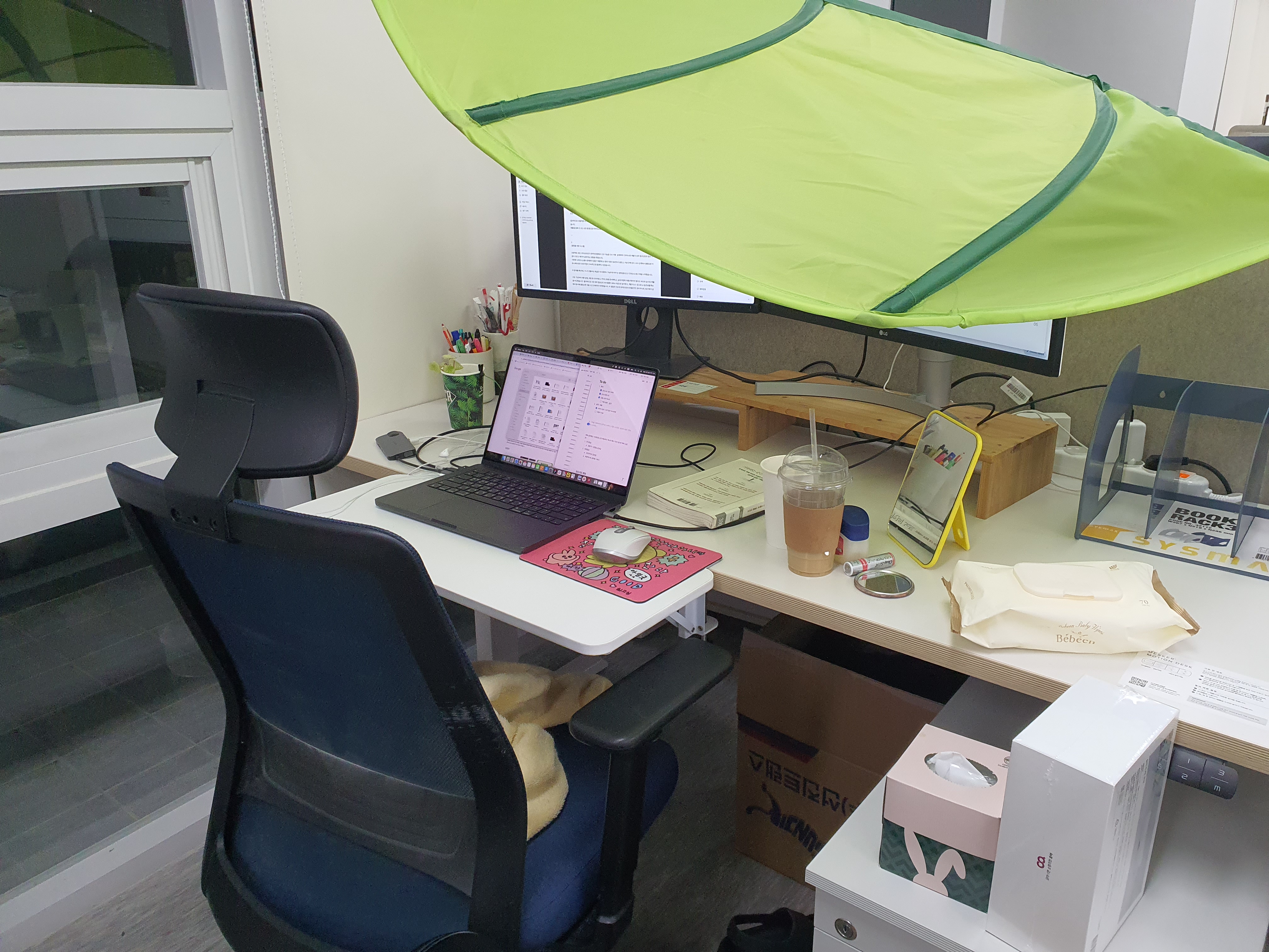 - 저녁에 비가 올 것 같아서 필라테스 갈까 고민했는데, 일단 옷은 챙겼고 비가 와도 가야겠다. 자리도 구석으로 이동되었으니 운동 갔다가 하루 기록하고 퇴근해야지.