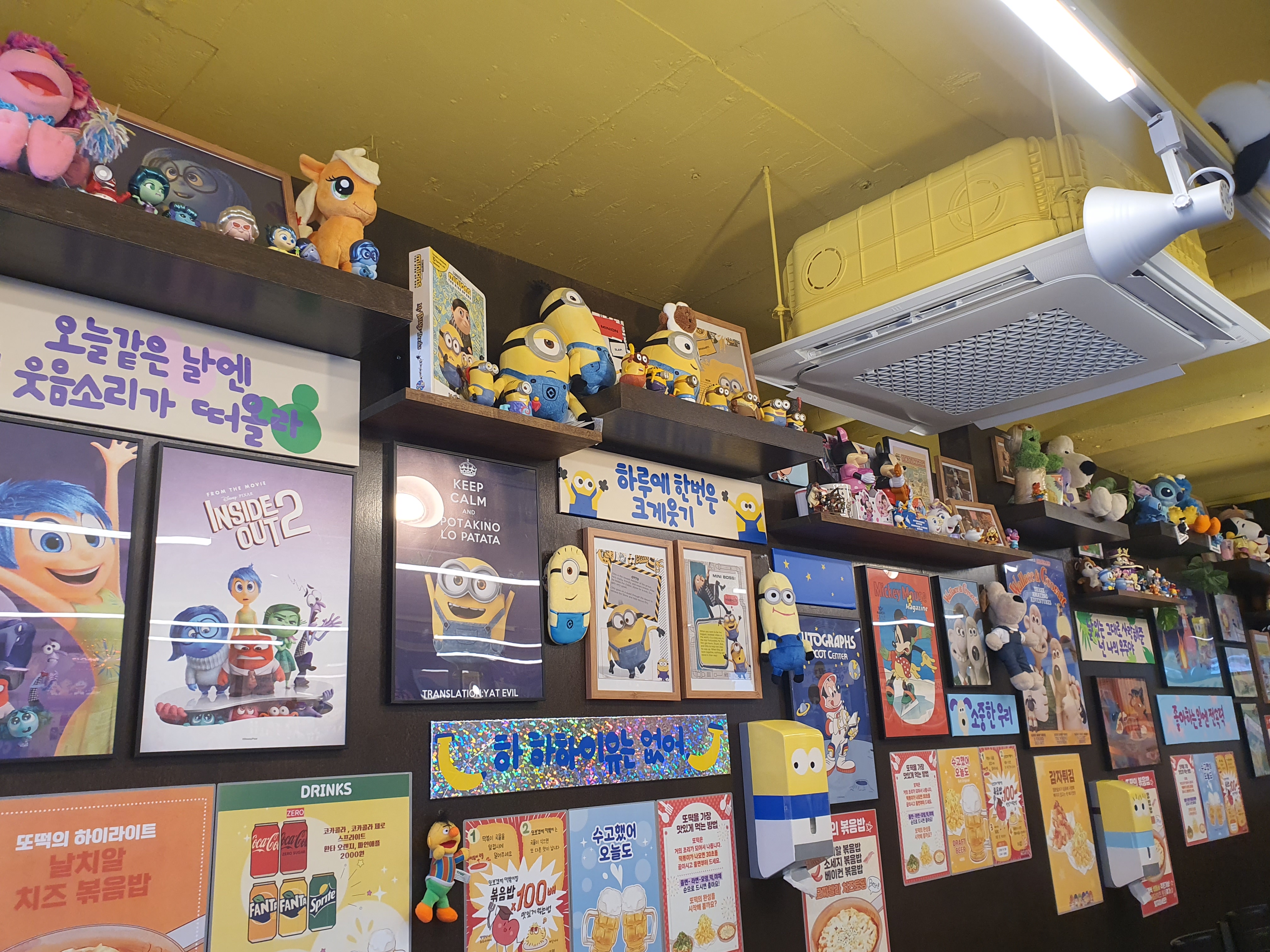 떡볶이 집을 갔는데 인테리어가 독특했다. 주인님이 픽사 광팩이신 것 같다. 자세히 보니 모든 캐릭터가 웃고 있다는 것을 깨달았다. 그리고 음식을 가져다주시는 사장님의 얼굴에도 미소가 걸려있었다. 밝은 목소리, 밝은 얼굴. 절로 기분을 좋게 해주었다. 계산을 할 때는 여전히 웃으면서 맛있게 먹었냐고 여쭈어보셨다. 사실 그렇게 맛있지는 않았지만 이건 내 미각이 문제가 있는 탓이기 때문에 맛있다고 말씀드렸다. 그리고 자연스럽게 인테리어가 귀엽다는 말을 덧붙였다. 원래 필요한 말만 하는데 왠지 요즘은 선한 사람들에게 말을 한 마디라도 해보고 싶은 것 같다. 사장님은 모으느라 고생을 하셨다고 한다.
