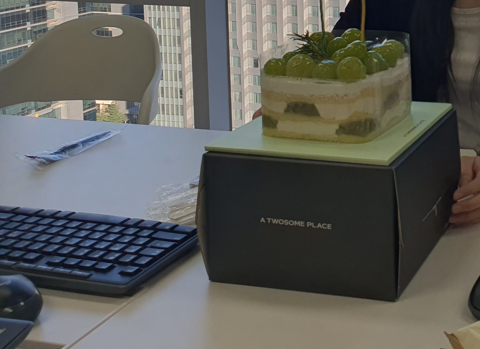 - 생일인 팀원 있어서 샤인머스캣 케익 삼. 동료가 커피를 사주었다.