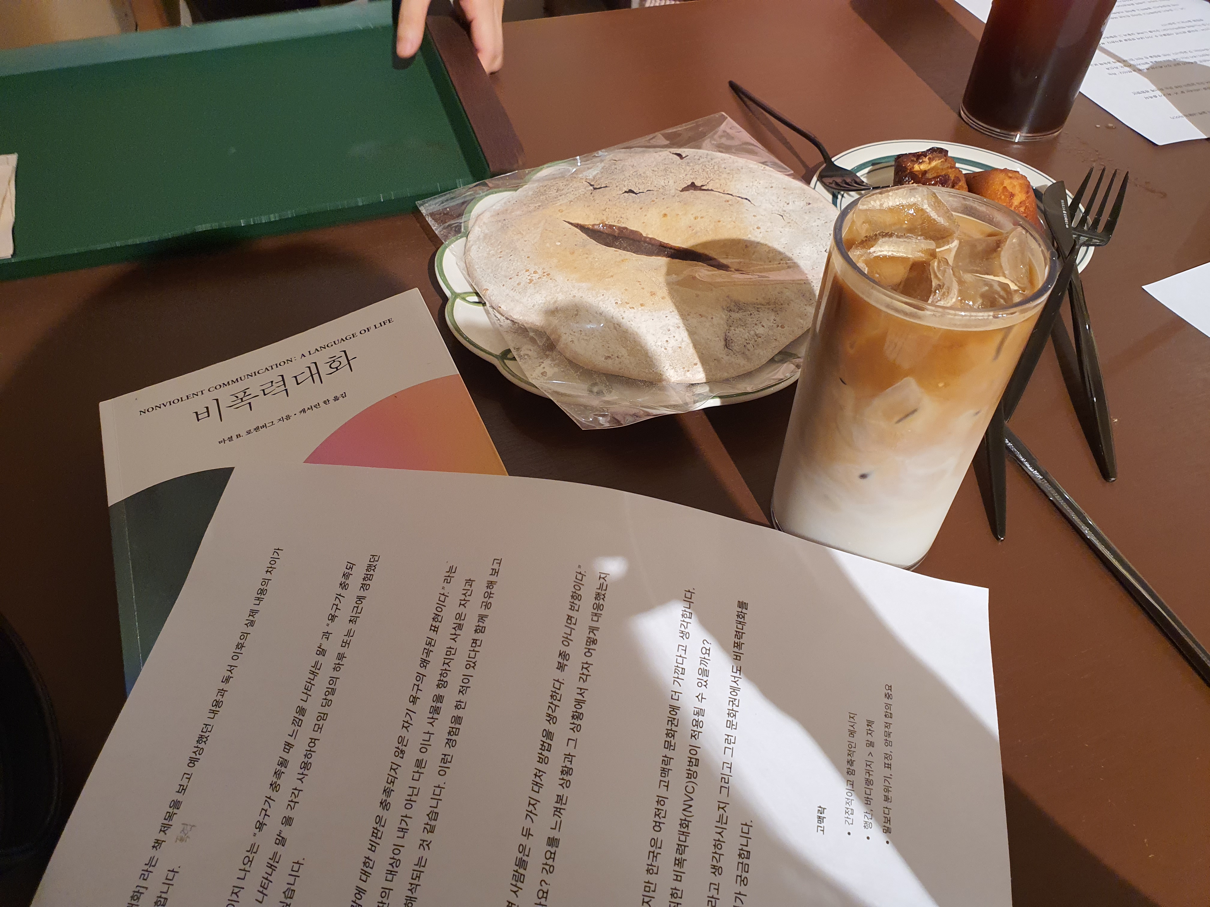 회사에서 월 1회 진행하는 독서모임을 하는 날이었다. 이번 달은 <비폭력 대화>. 참여자는 5명이었지만, 늘 그렇듯 당일에 생각지도 못한 약속들이 많이들 잡힌다. 하지만 나는 소규모를 더 좋아하기 때문에 오히려 좋았다. 오늘은 나를 포함하여 3명에서 진행하게 되었다. 발제를 담당한 동료가 너무 좋은 질문을 준비해와서 폭력과 자책, 성찰, 감정과 욕구를 다방면으로 돌아볼 수 있는 시간이었다. 건전한 사고와 태도를 갖추신 분들이라 서로의 삶을 이야기하며 긍정적인 대화를 하면서 유익하게 보낼 수 있었다.