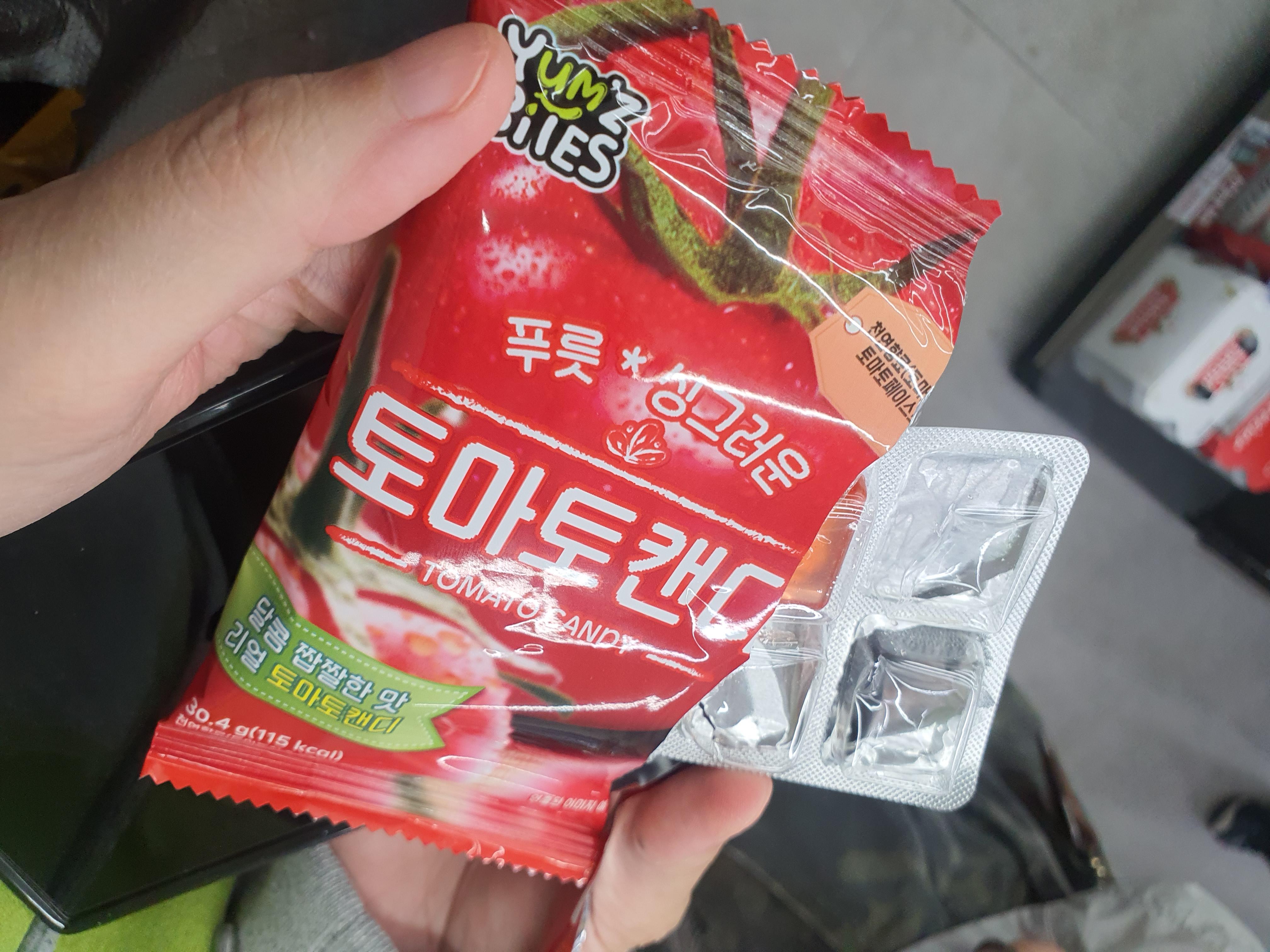 9월의 마지막 날. 사라질 포인트를 뼈와 살로 바꾸기 위하여 모두 편의점을 털고 있었다. 동료가 토마토캔디를 먹어보겠냐고 물어보았다. 토마토와 캔디라니. 도전 정신을 되살려서 입으로 하나 넣어보았다. 처음이 마지막 토마토캔디... 사람들의 입맛이 다양해서 다행이다. 덕분에 상품이 팔릴 수 있으니. 나중에 오이 캔디가 나오면 한번 먹어보고 싶기도.