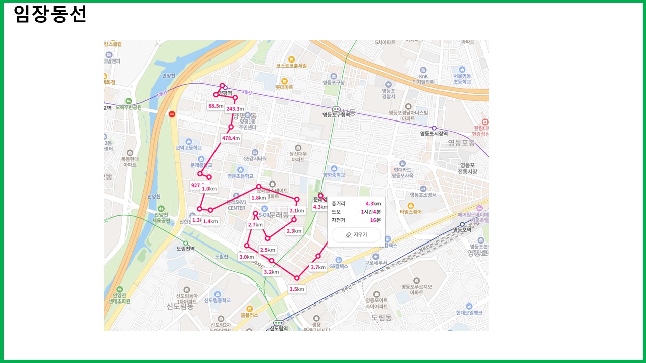 - 주요 동선: 양평역 → 문래역 → 문래자이 → 문래SKV1센터 → 영등포구청 일대