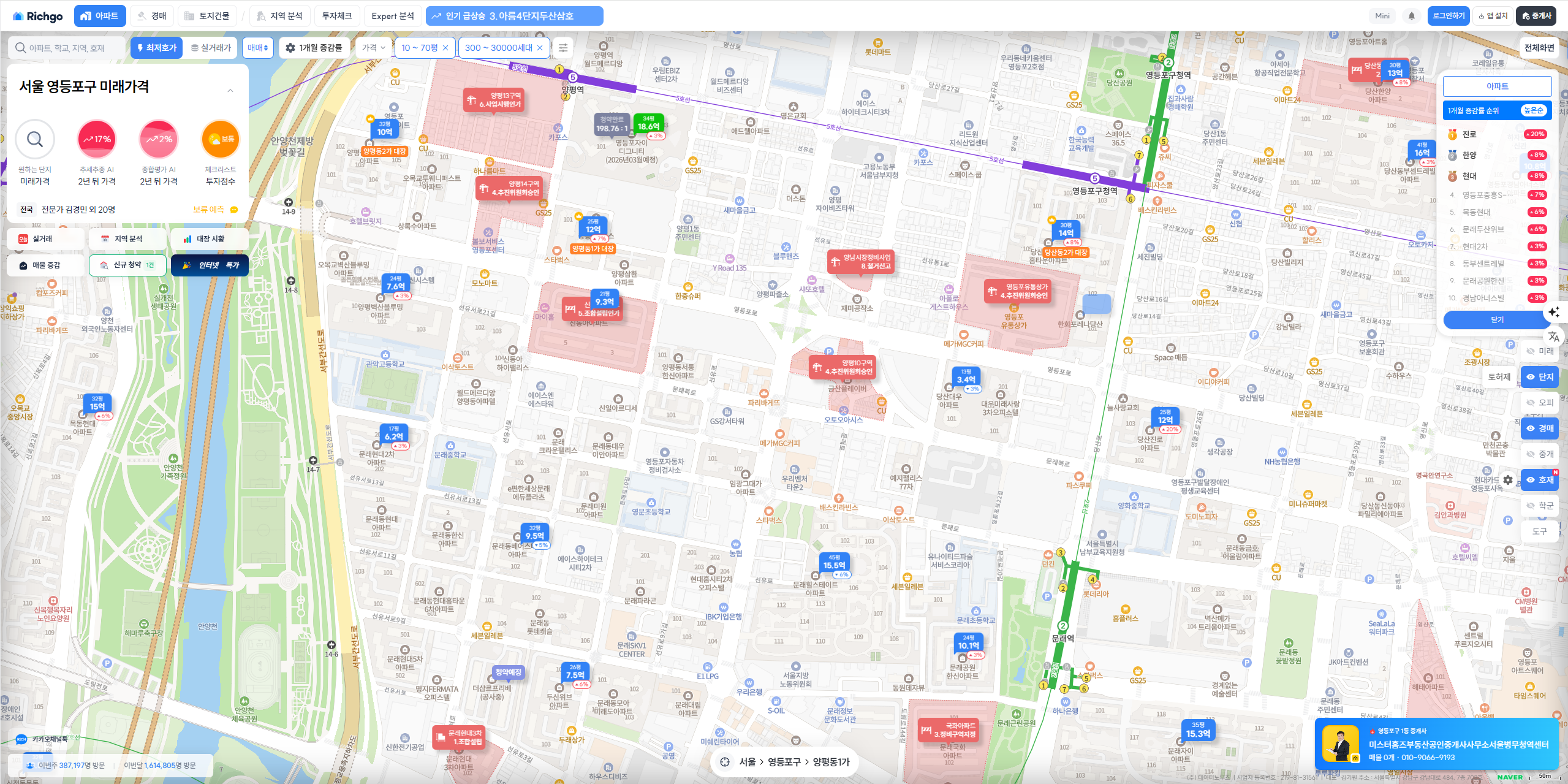 - 평당가 : 약 4,000만 원대 (영등포 전체 대비 중간 수준)