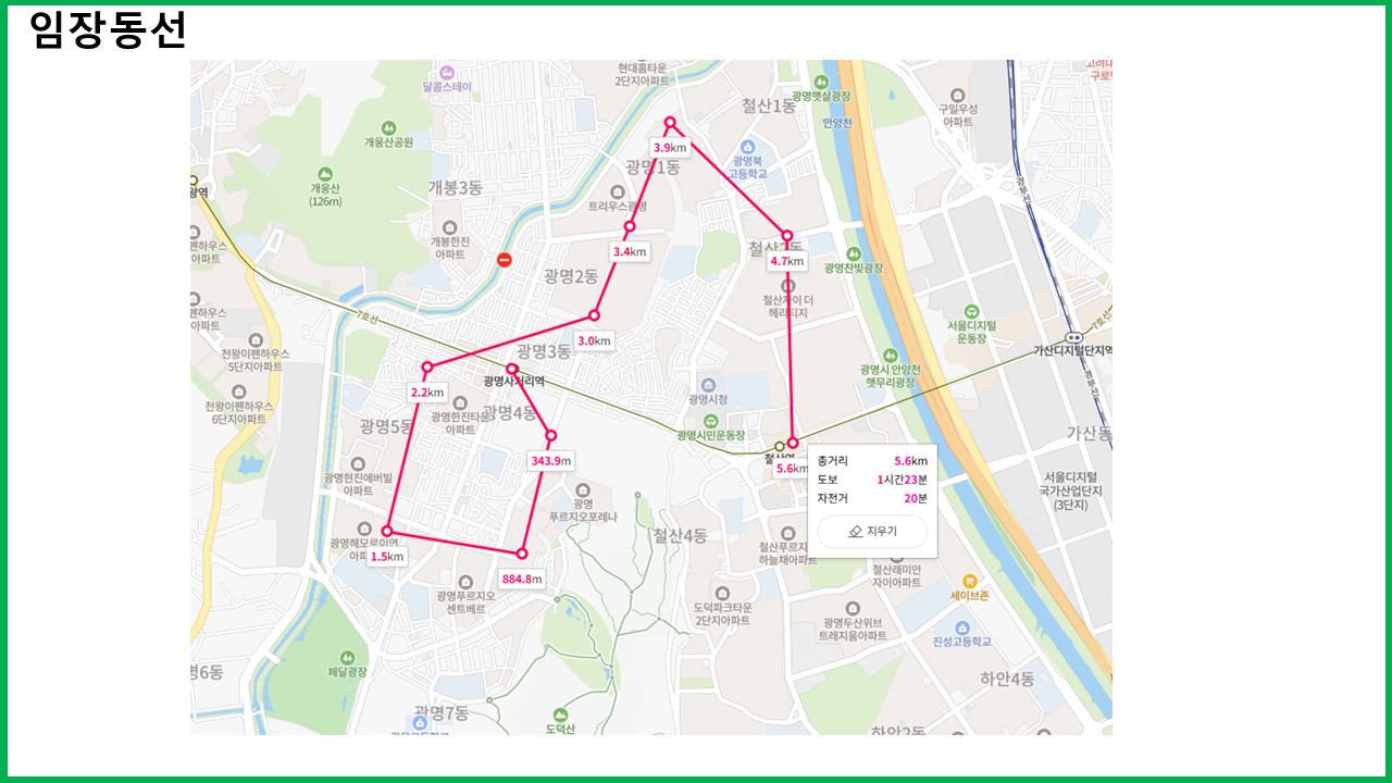 광명사거리역 → 광명3동 → 철산동 → 하안동 → 광명5동 → 광명사거리 복귀 - 핵심 포인트: