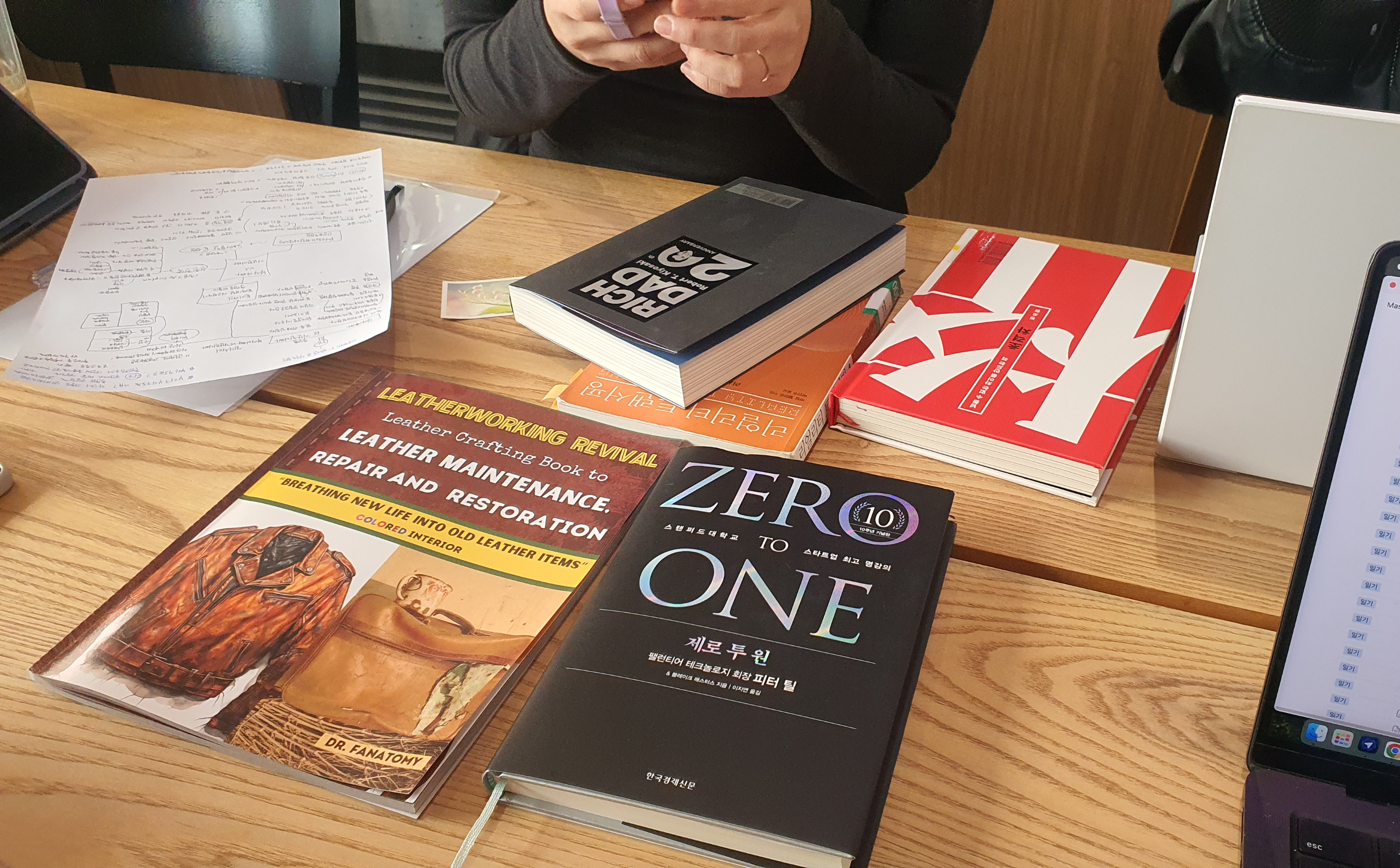 굉장히 다양한 배경의 사람들을 뵐 수 있었다. 정신과 육체적인 건강에 힘쓰는 웰니스 분야에서 일하시는 분과, 웹/앱 개발자로 개인 사업을 진행하시는 분, 미드저니 전문가 등. 아무래도 사업이라는 주제로 모인 분들이기 때문에 일에 대한 이야기가 주를 이루었다. <제로투원> 자체가 너무 오래전에 쓰여진 책이기 때문에 다소 시대에 역행하는 것 같다는 생각에 모두 동의했다. 이전에는 경량문명에 대하여 모임을 하게 되었는데, 이번에는 정 반대인 조직을 잘 꾸려야 한다는 내용이라서 잘 와닿지 않았다고. 확실히 책을 읽으면서 공감을 하기보다는 내가 가고 싶은 방향과는 다소 거리가 멀다는 생각을 했는데 비슷한 느낌이었던 것 같다.