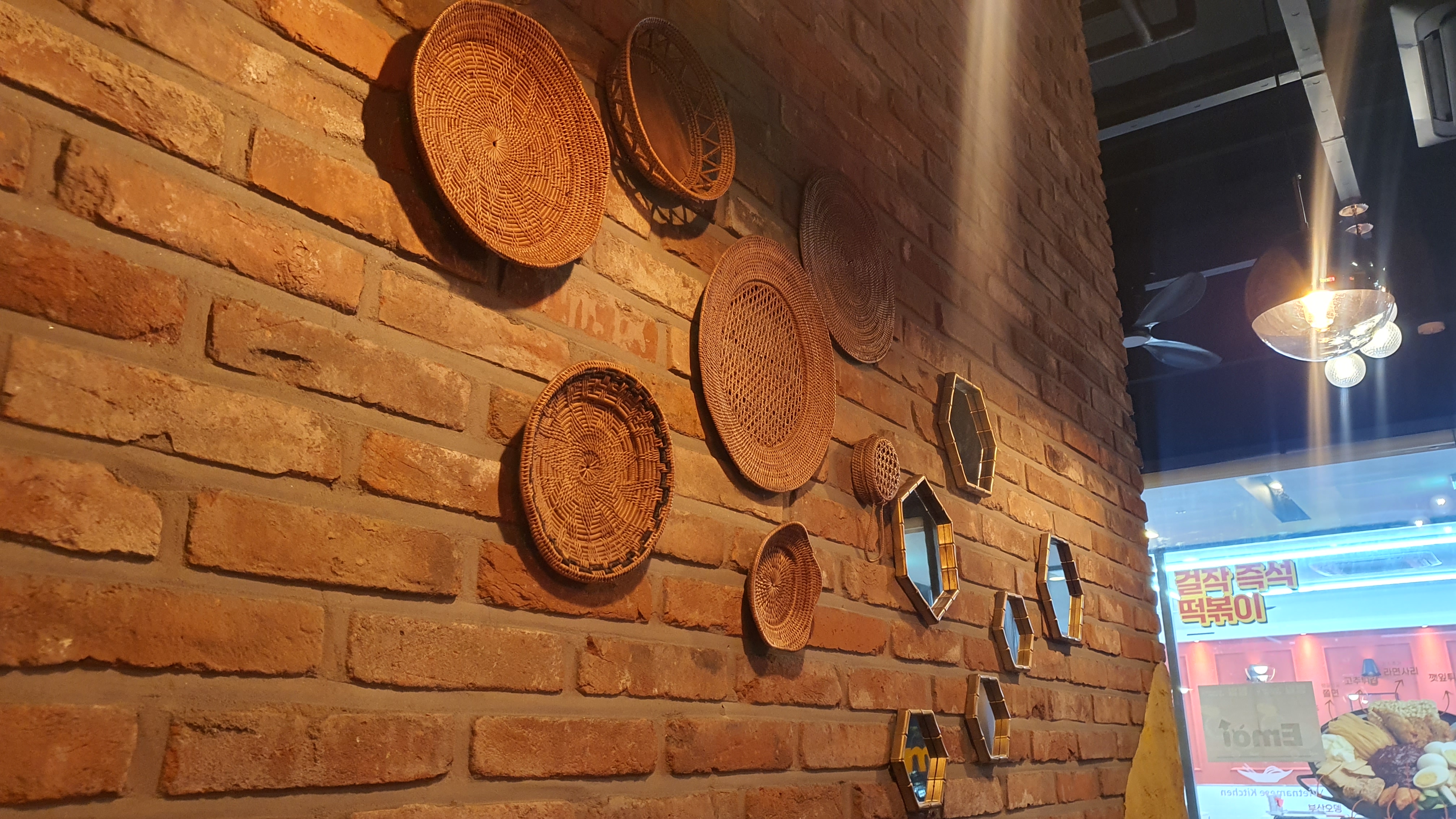 저녁에 밥을 먹으러 왔는데 벽에 정체를 알 수 없는, 나무 쟁반 같은 것들이 달려 있었다. 어떻게 보면 바구니 같기도 하고. 그런데 벽에 걸어두니 하나의 작품 같기도 하다. 꼭 그림만 걸어두라는 법은 없지 않을까. 이런 것도 사물을 새롭게 바라보고 가치를 부여하는 방법 같기도 했다.